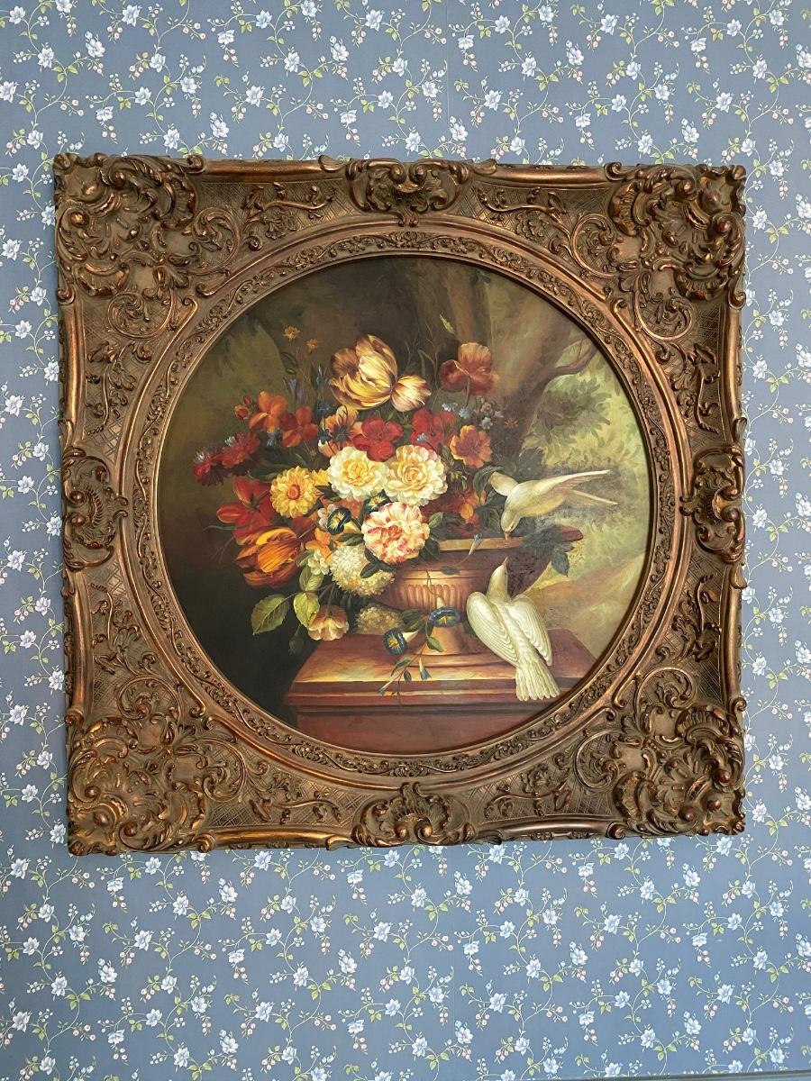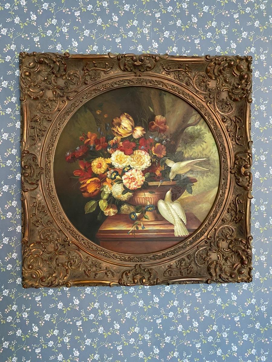 Ornate Gold Framed Bird Print 40x40, Frame is Composite