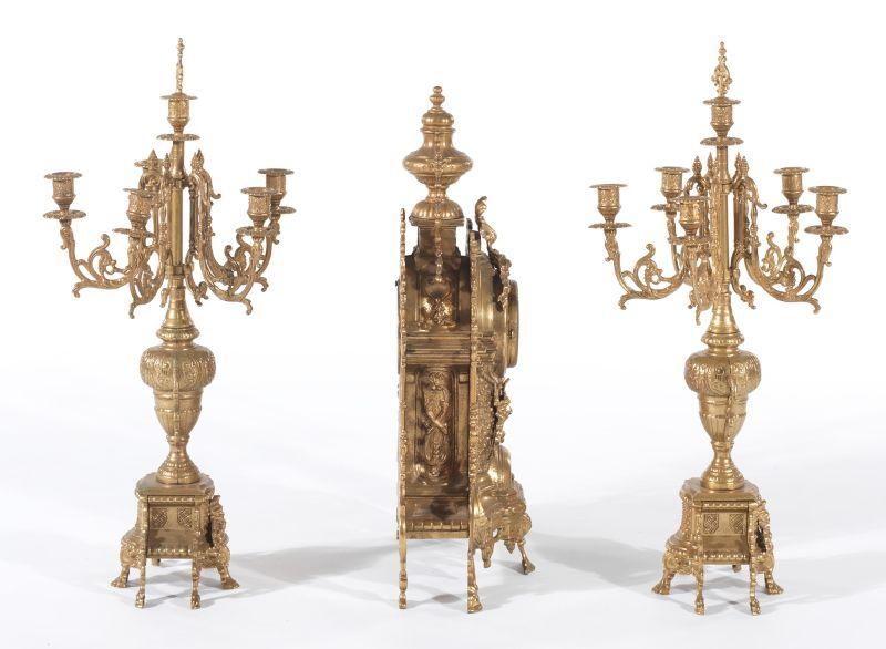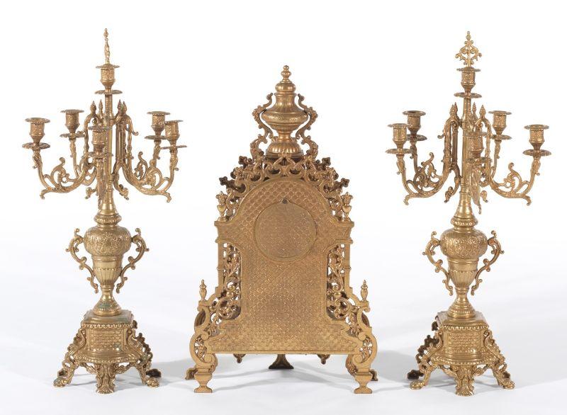 Ornate Imperial Brass Three Piece Clock Garniture Set - Made in Italy