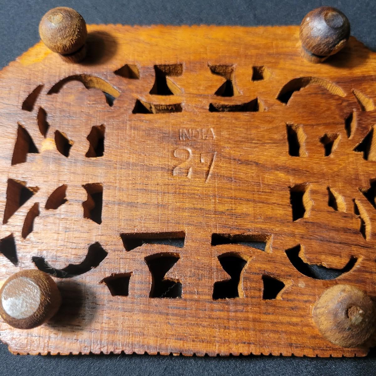 Ornate Indian Brass and a Carved Trivet (LR-DW)
