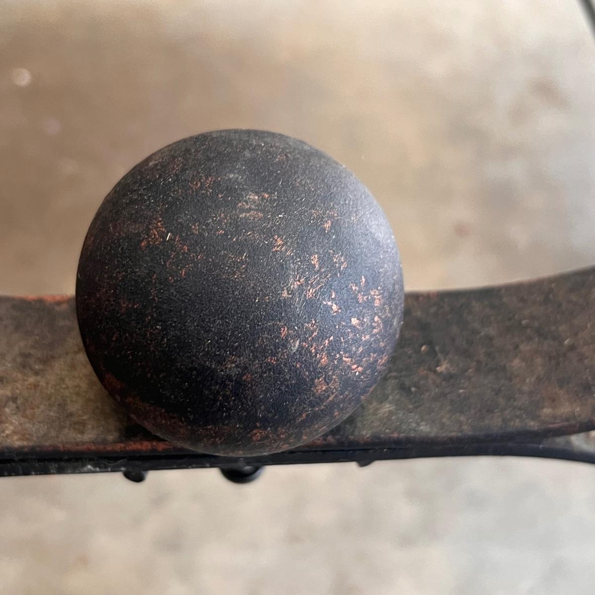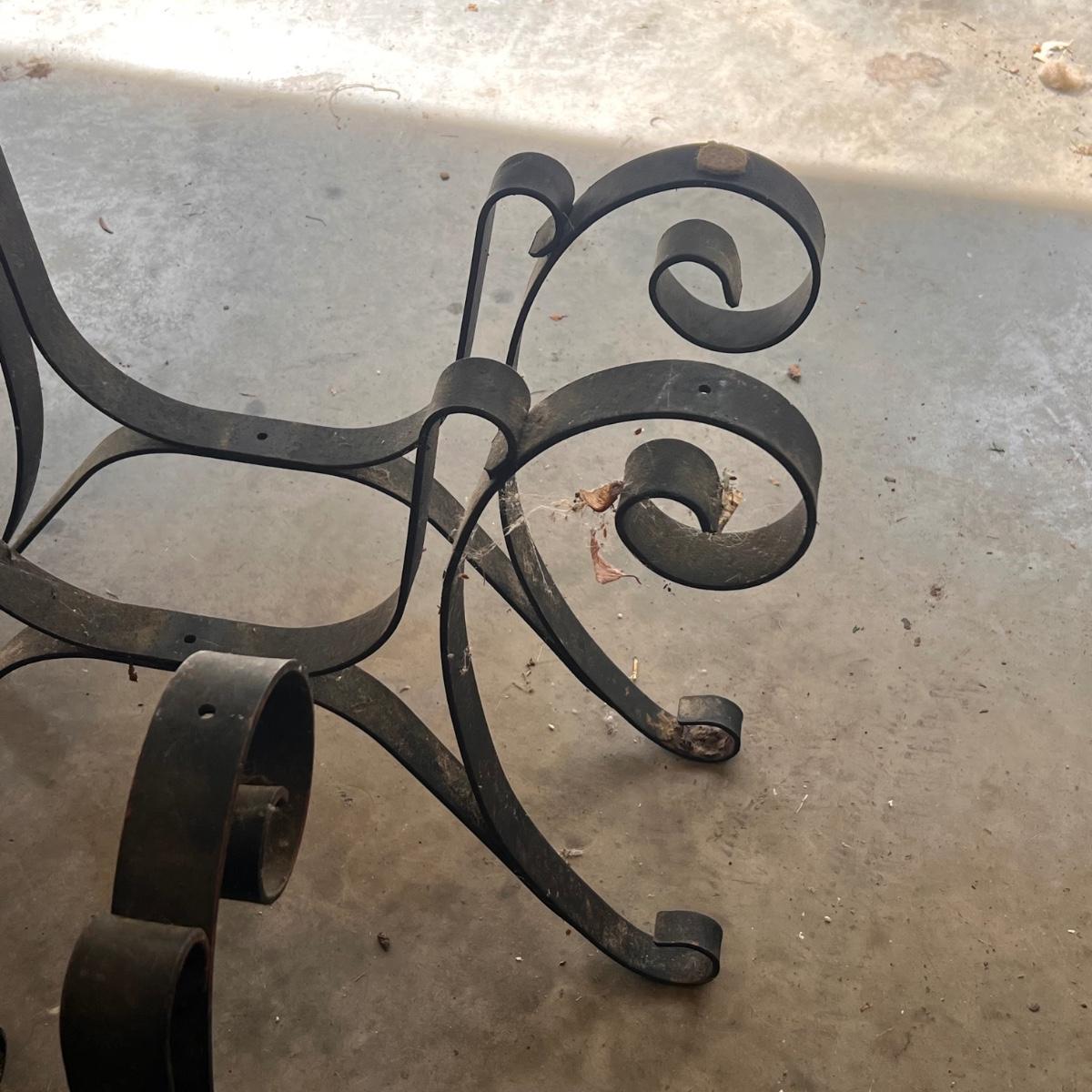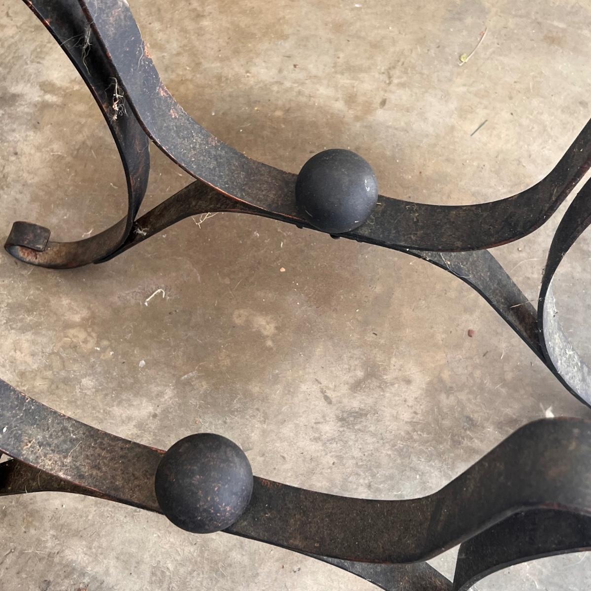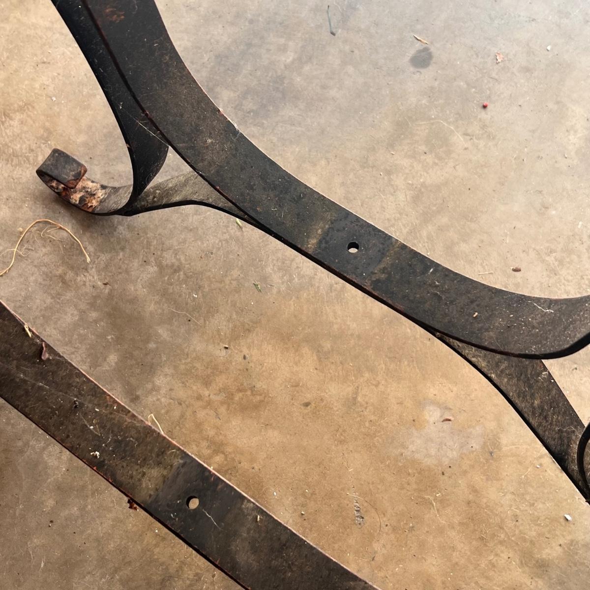 Four decorative iron legs for a table; there is no top included so this is a project in the making. All the legs are the same size. The two without the decorative balls look like they would be the ends and the two with balls could be for a second table or used for the middle section for one table. A rod of some sort would be needed to support the sections.