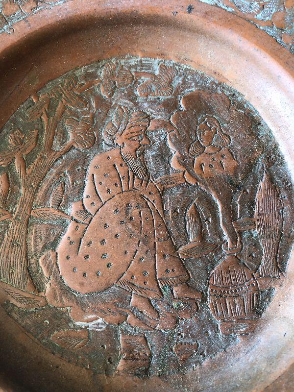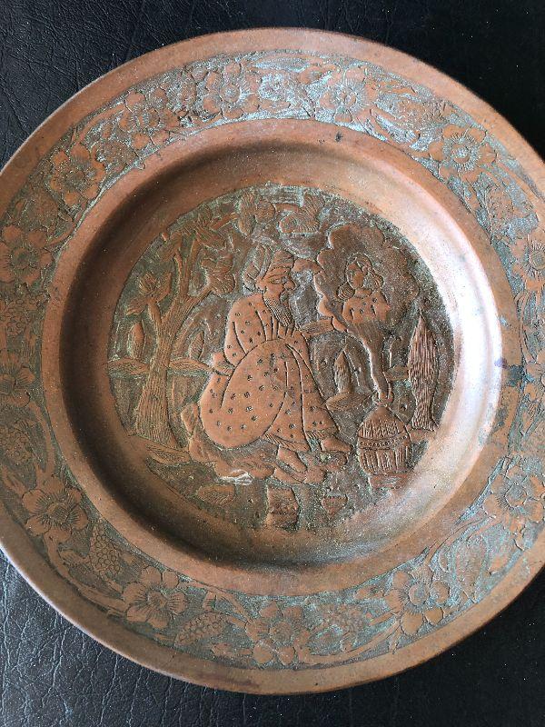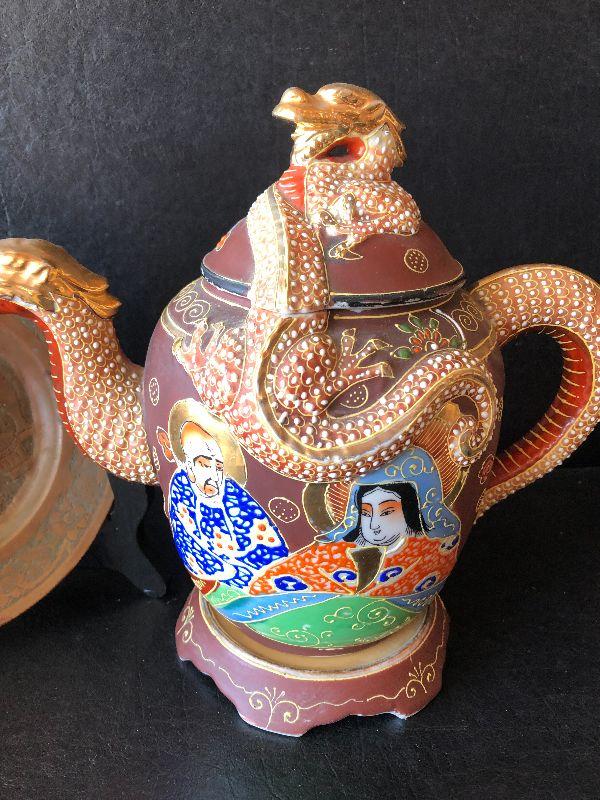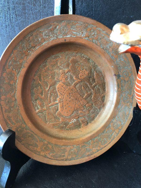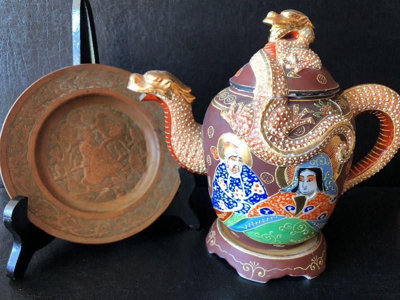 G3: Ornate Japanese Teapot and Copper Etched Plate Made in Iran