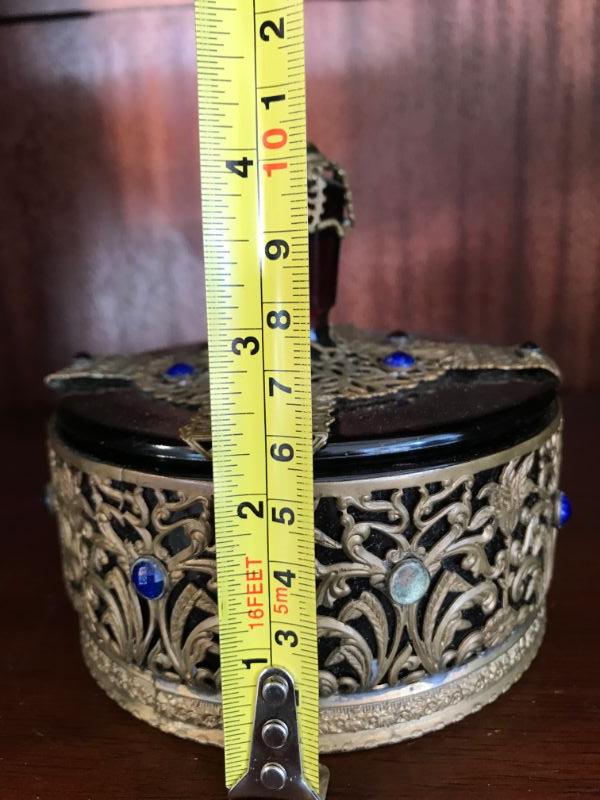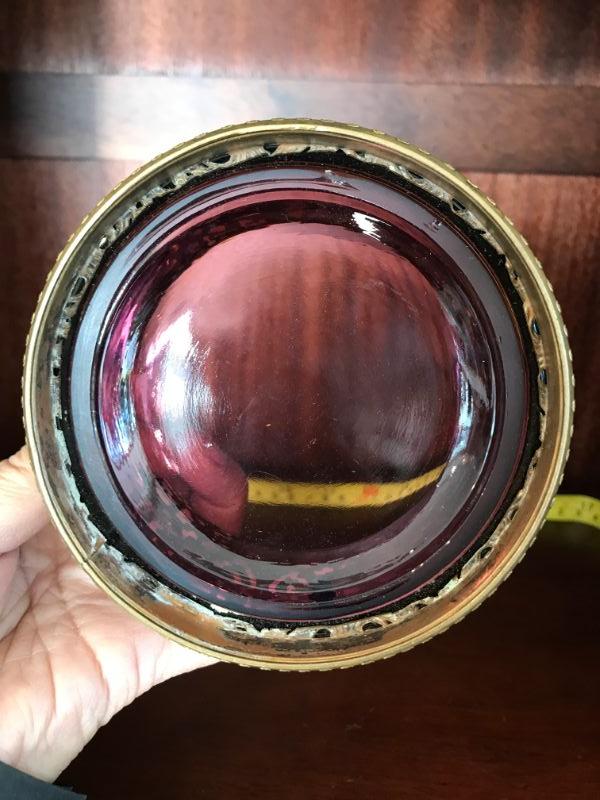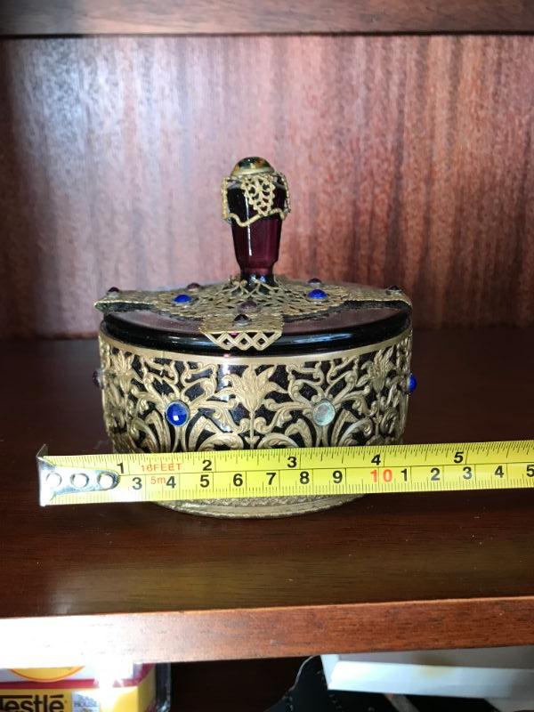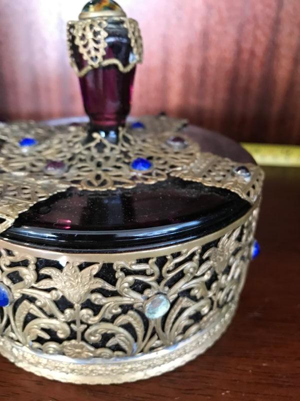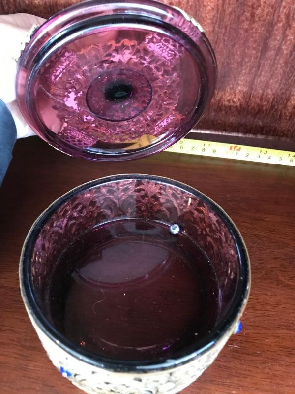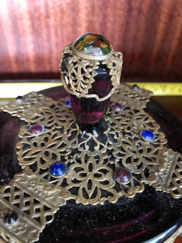 Beautiful Ornate Purple Glass Jewelry Dish (there are some jewels missing, see pictures.