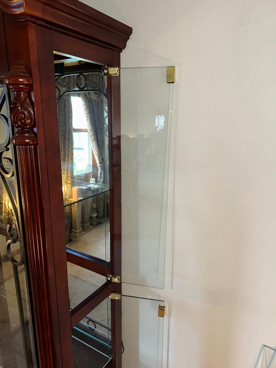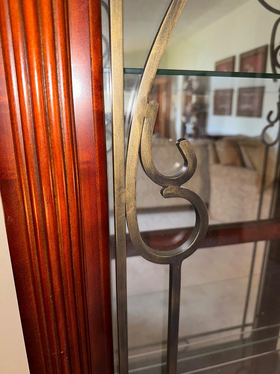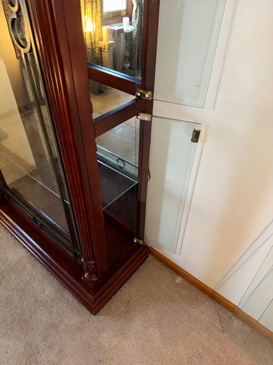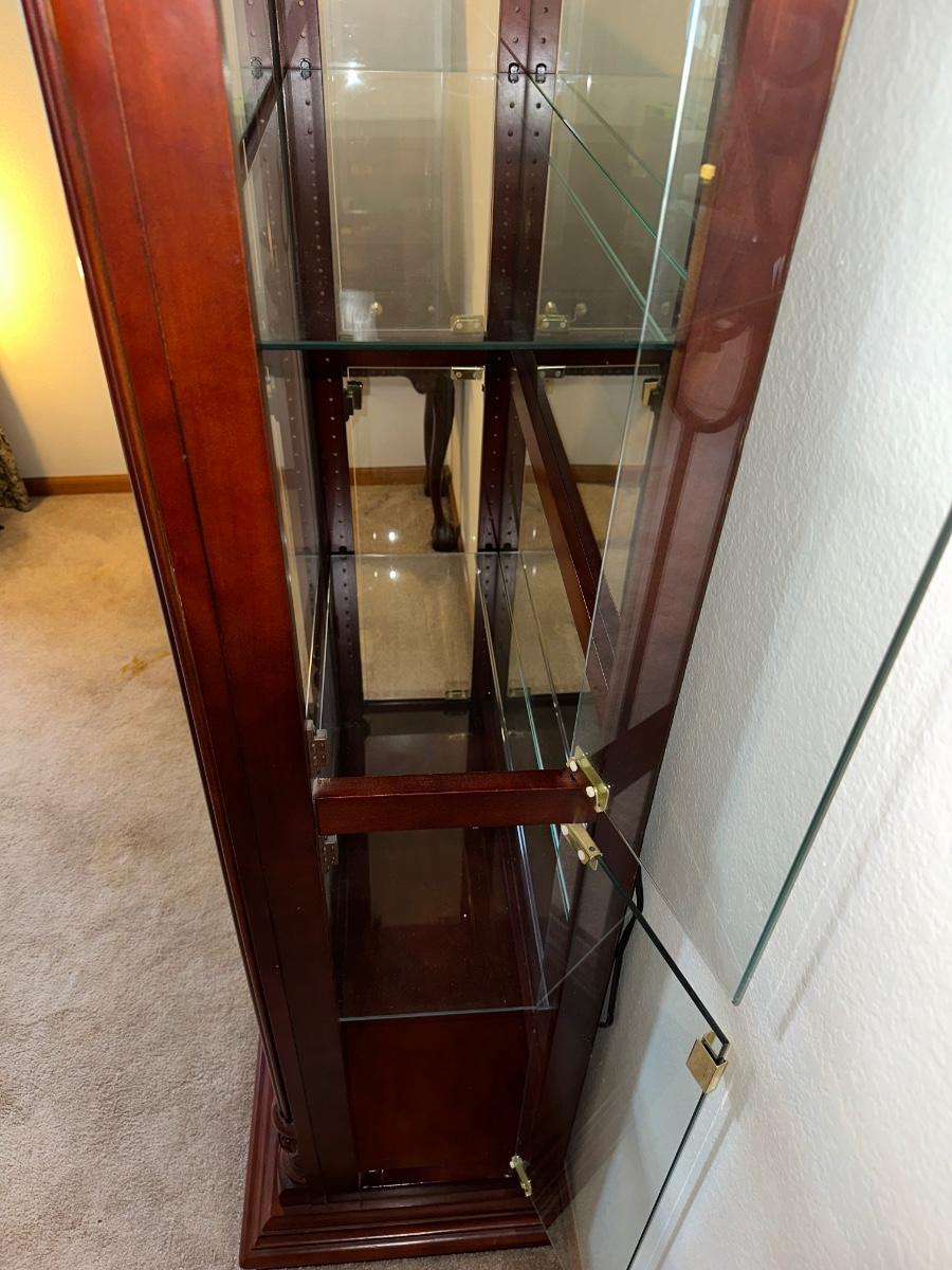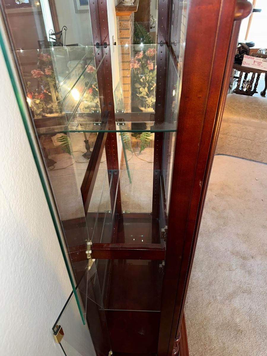 ORNATE LIGHTED CURIO CABINET WITH MIRRORED BACK