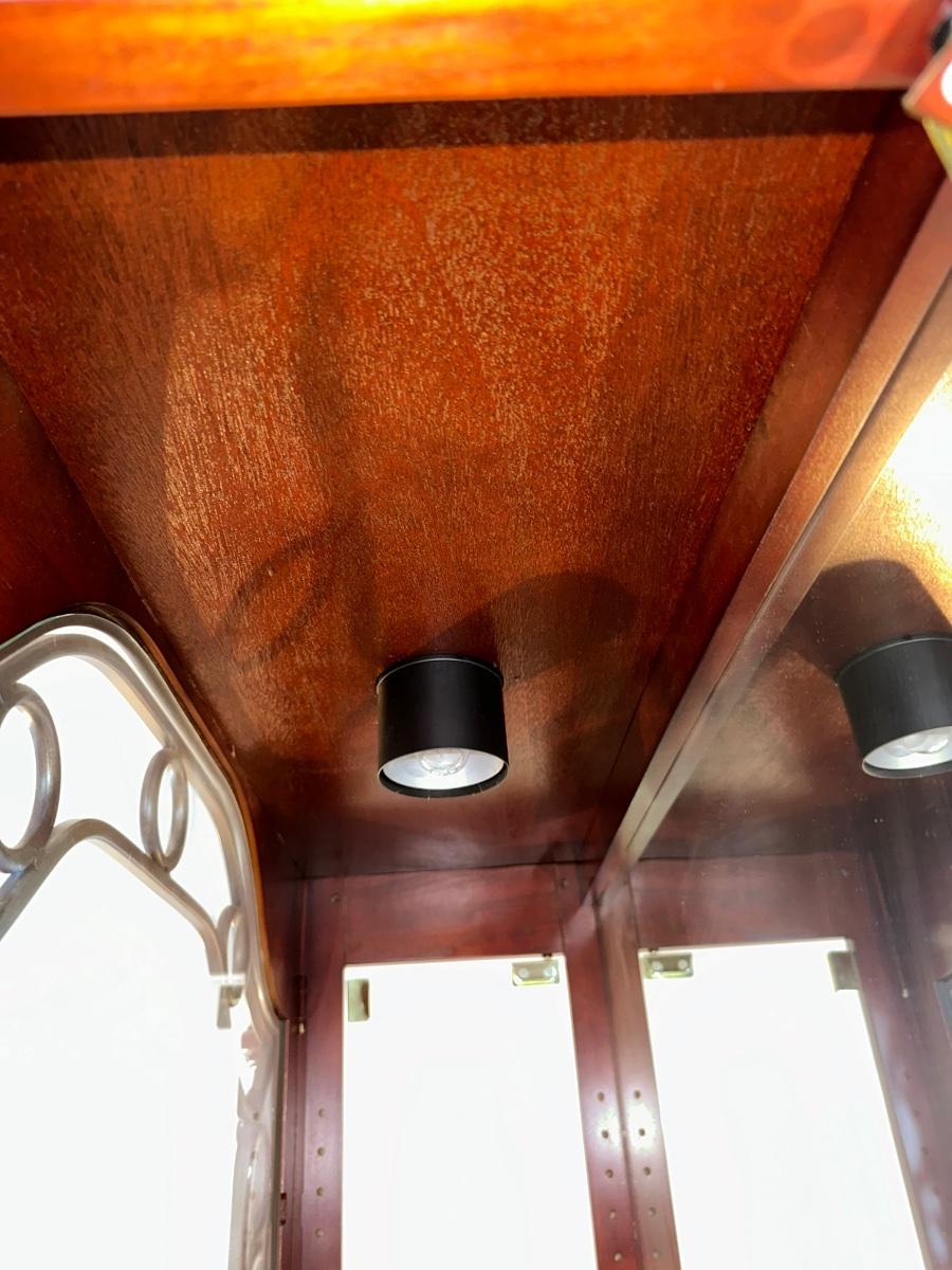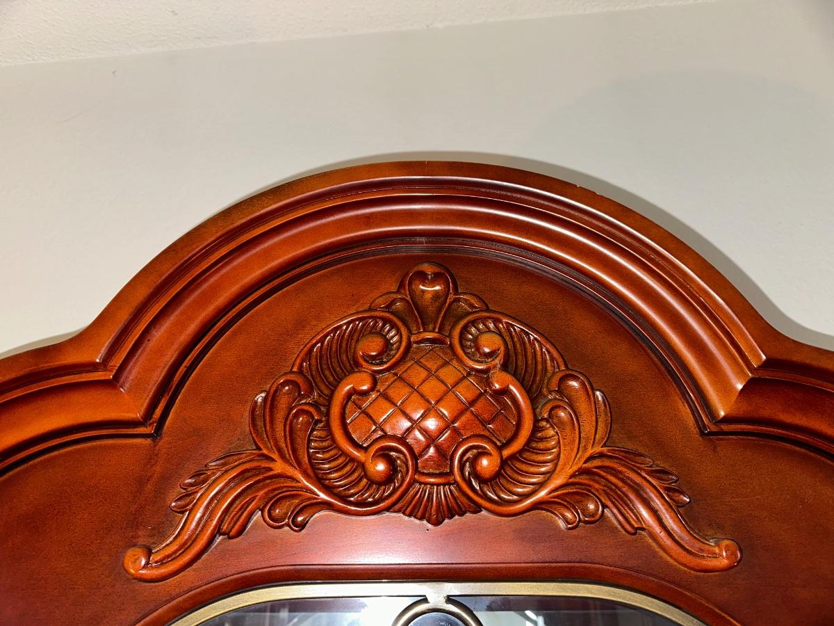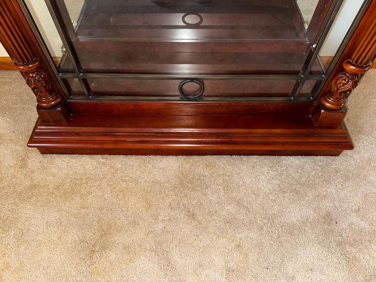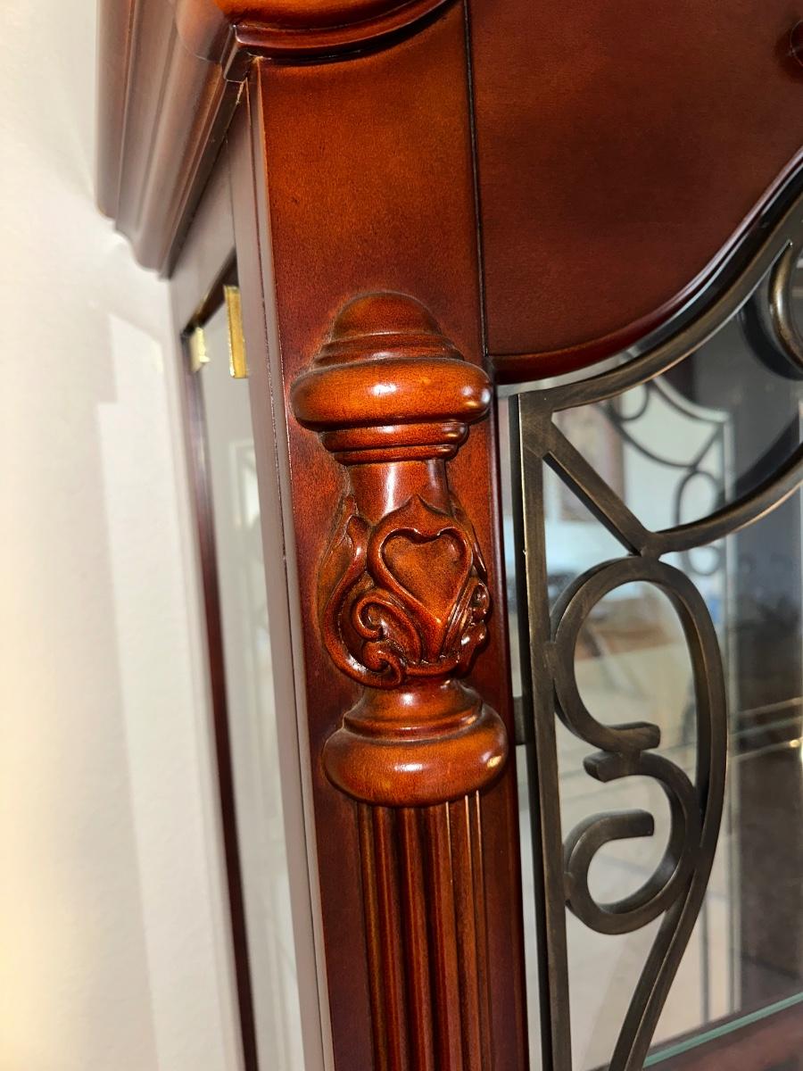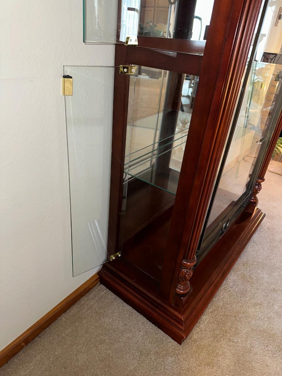 ORNATE LIGHTED CURIO CABINET WITH MIRRORED BACK