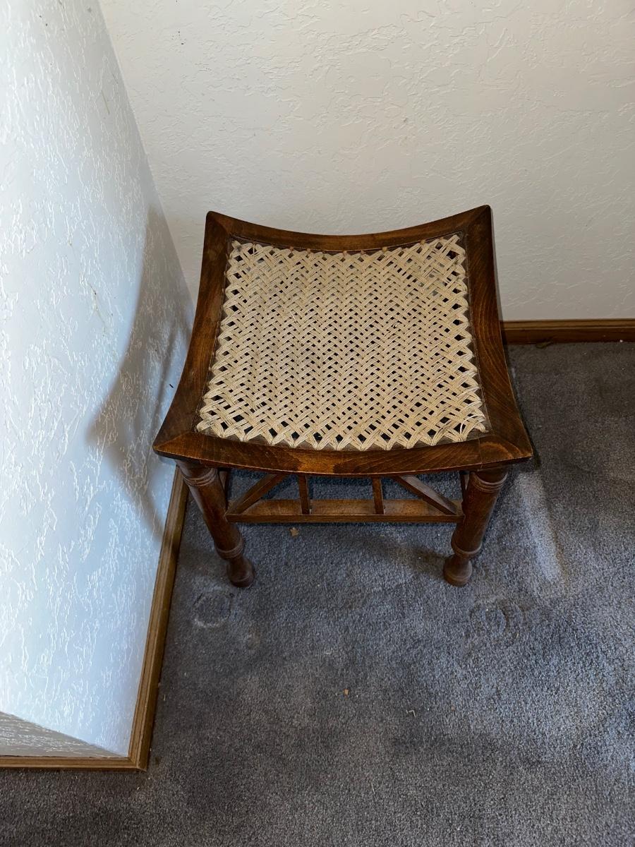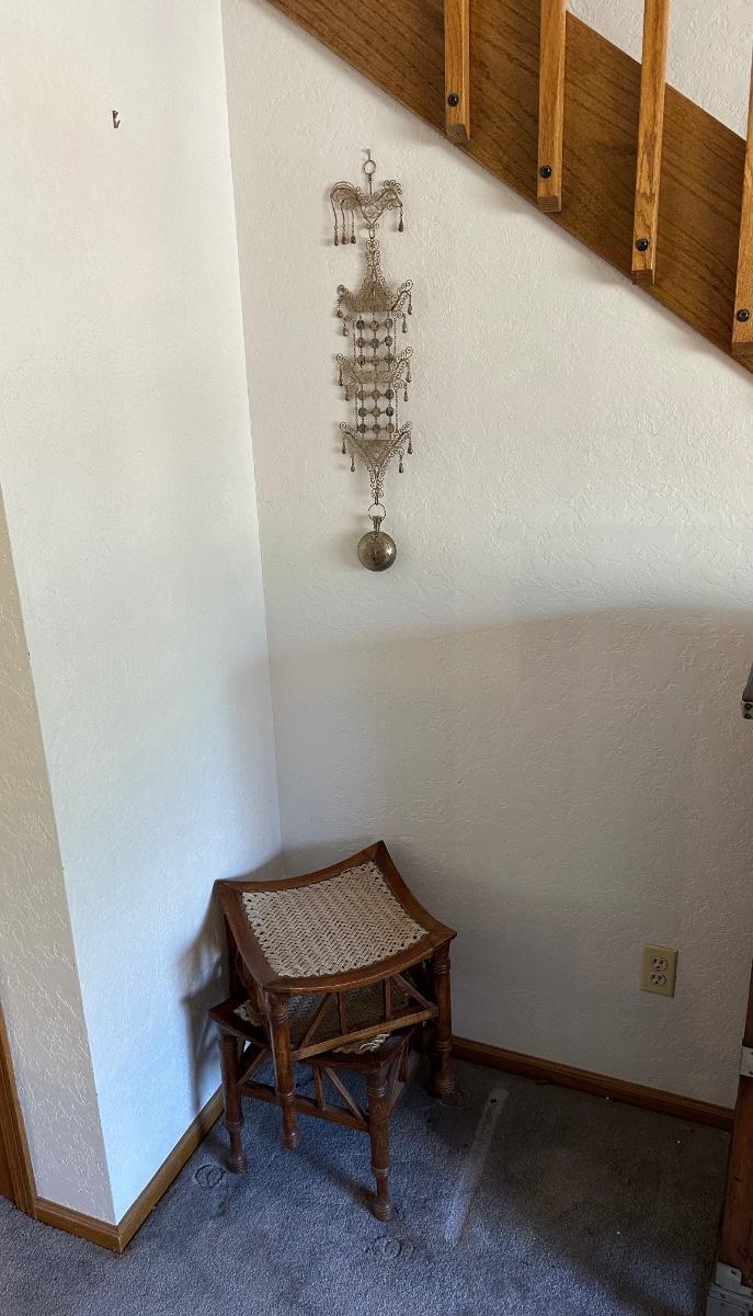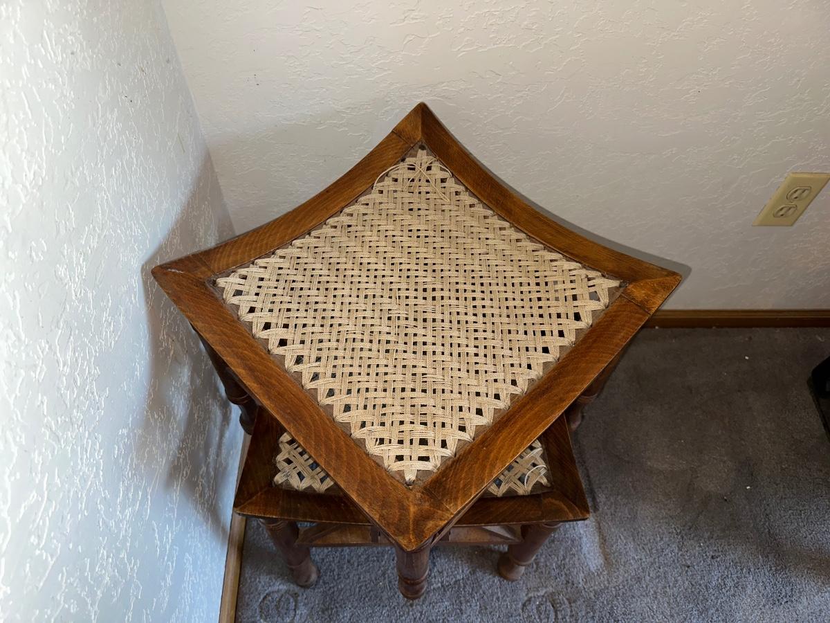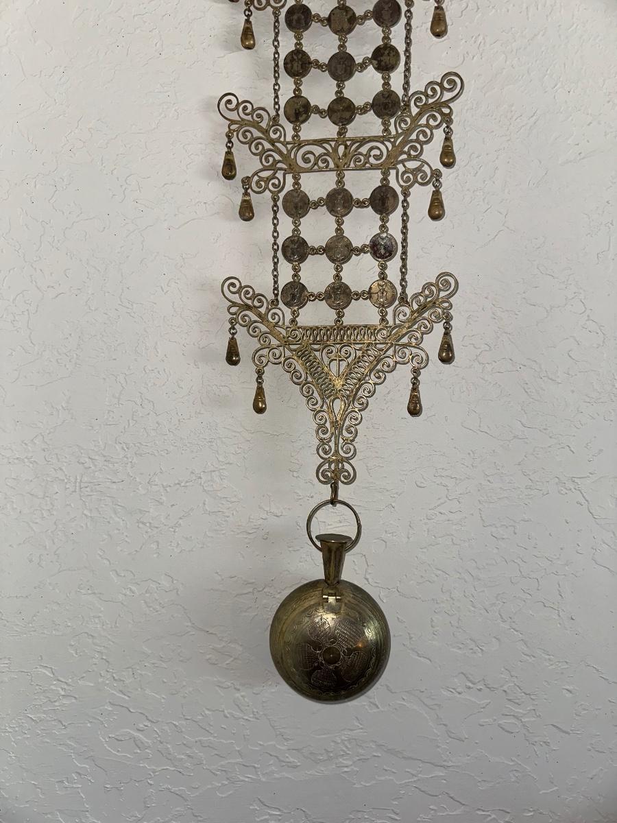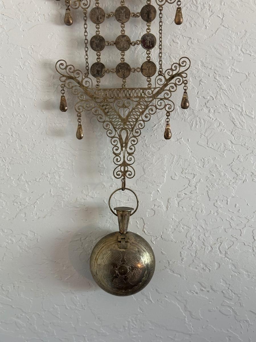 ORNATE METAL WALL ART FROM THE PHILIPPINES AND WOODEN STACKING STOOLS WITH WOVEN TOPS