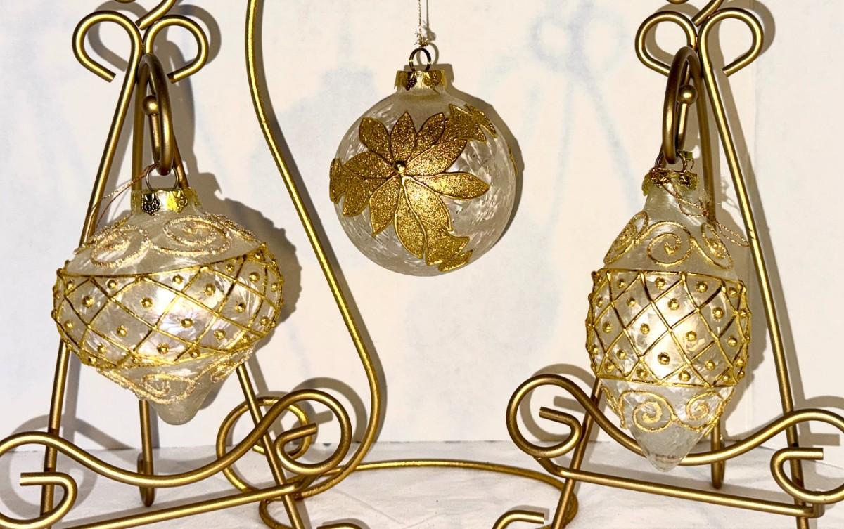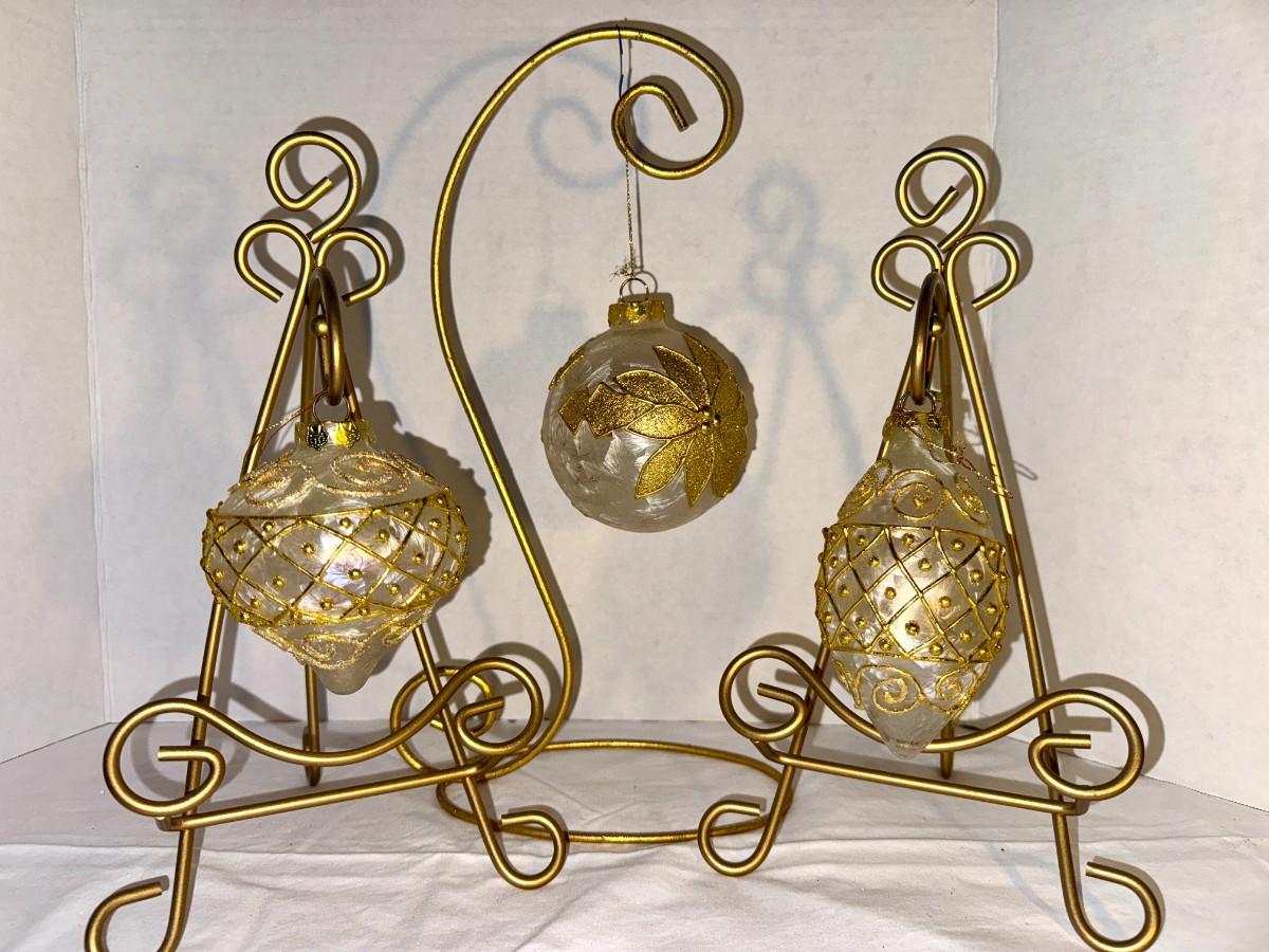 Ornate Pearlescent and Gold Elegant Christmas Ornaments Lot of 3