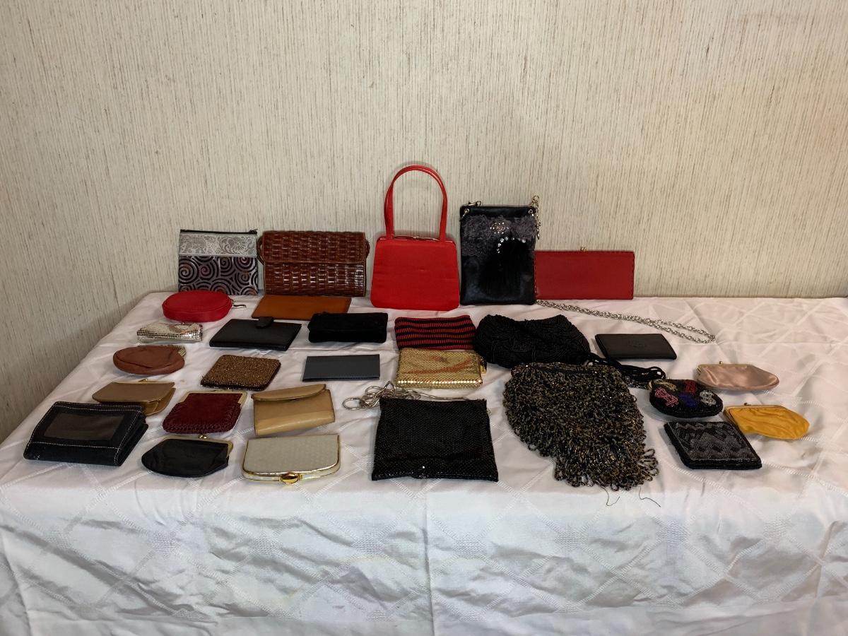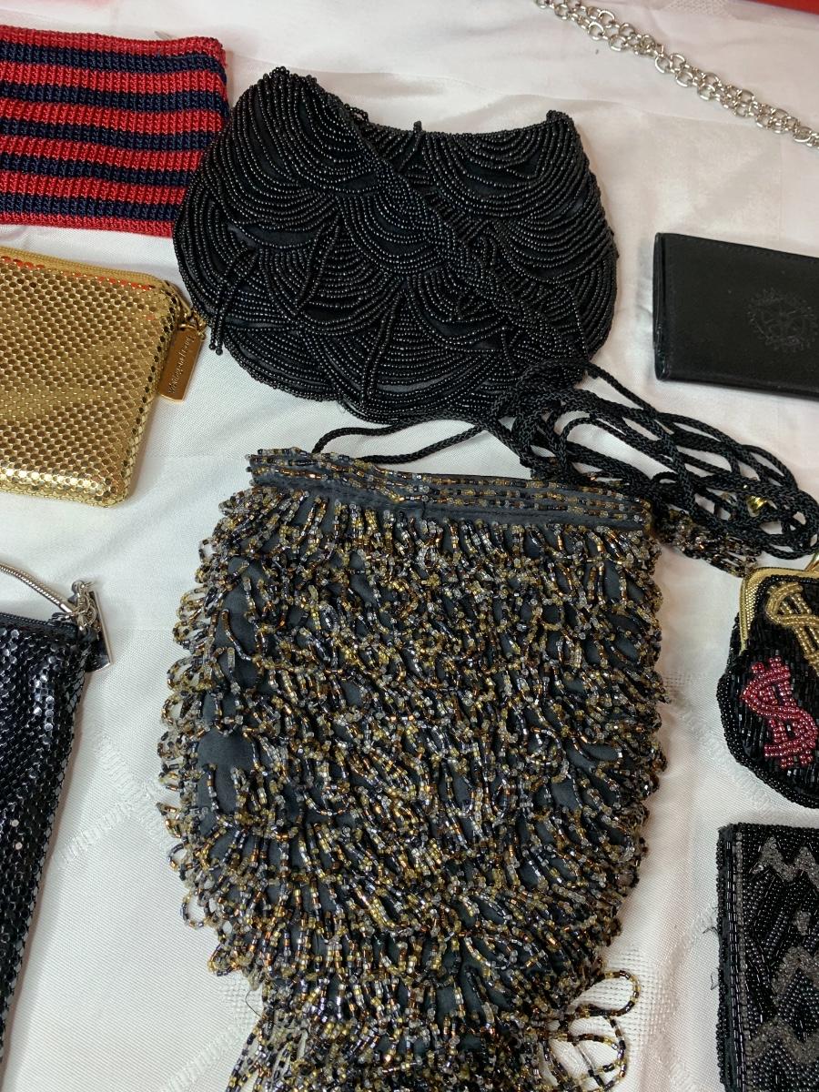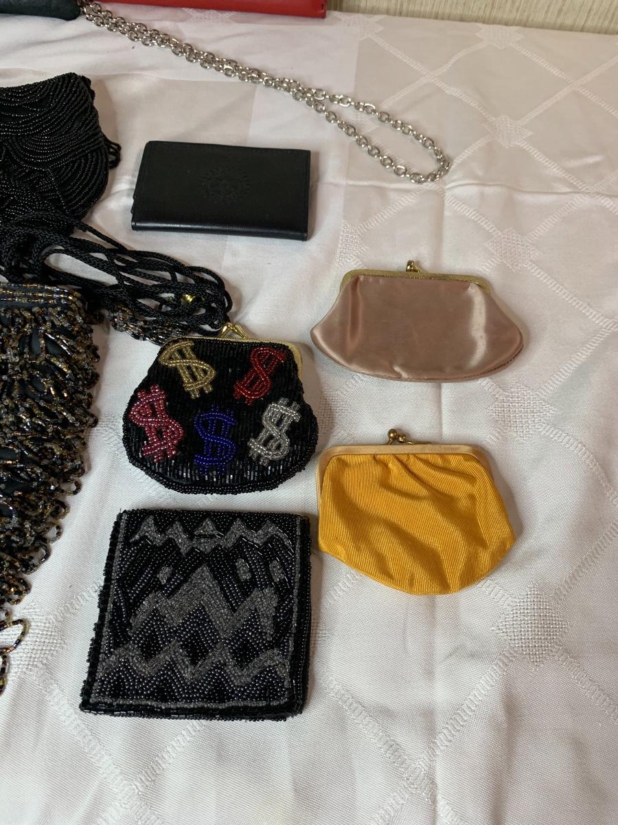 Assorted lot of ornately decorated small formal purses and coin purses ranging from brand new to poor condition with most being in great condition