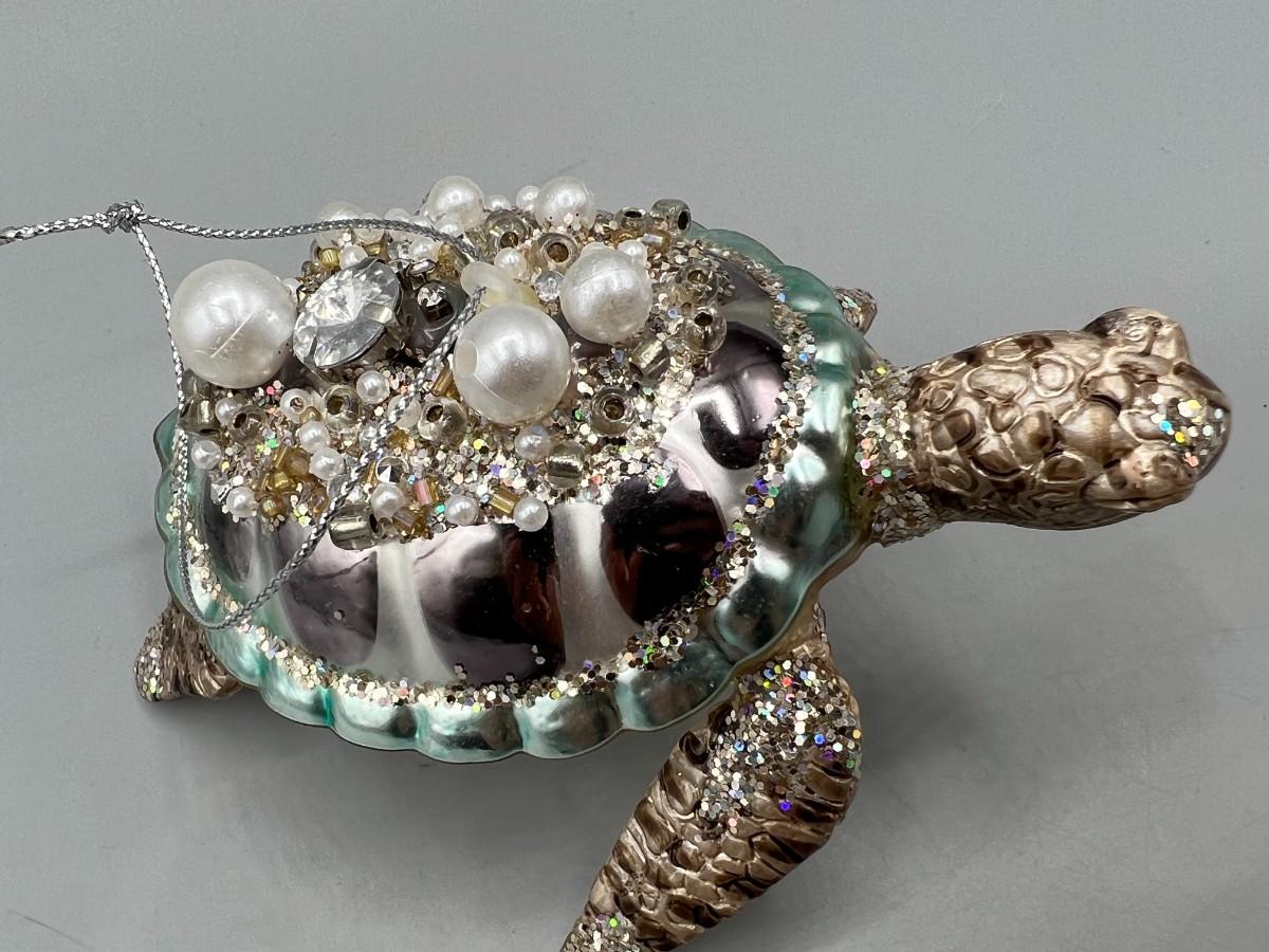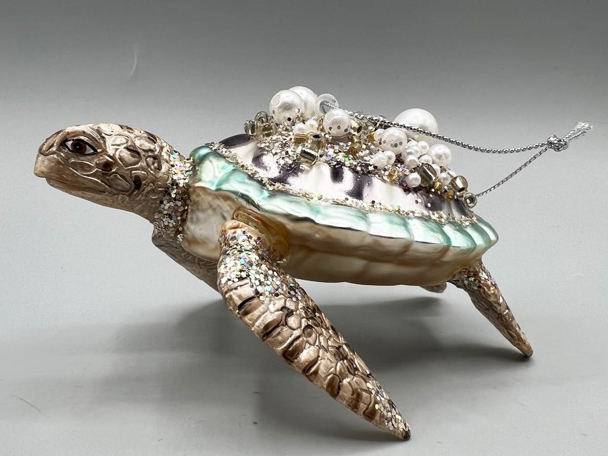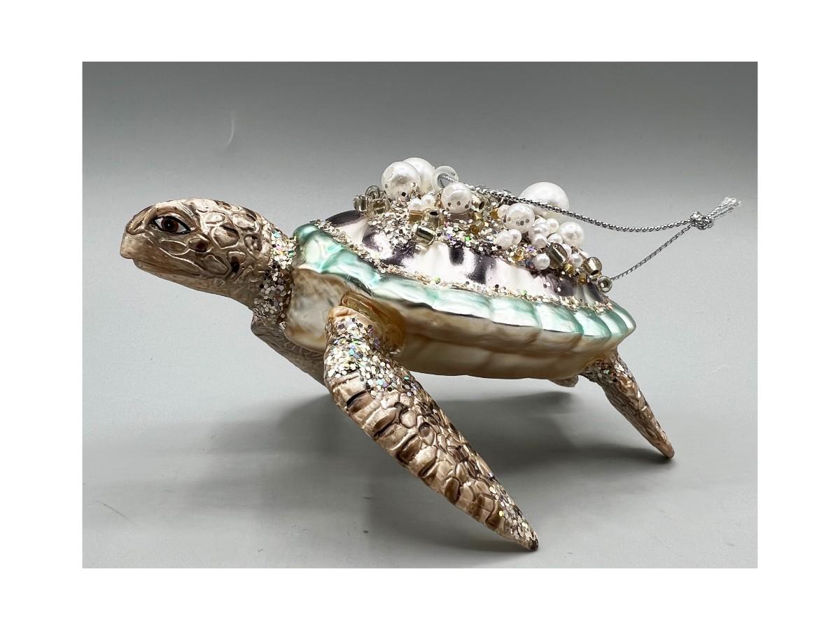 Ornate Sparkling Sea Turtle Hanging Ornament