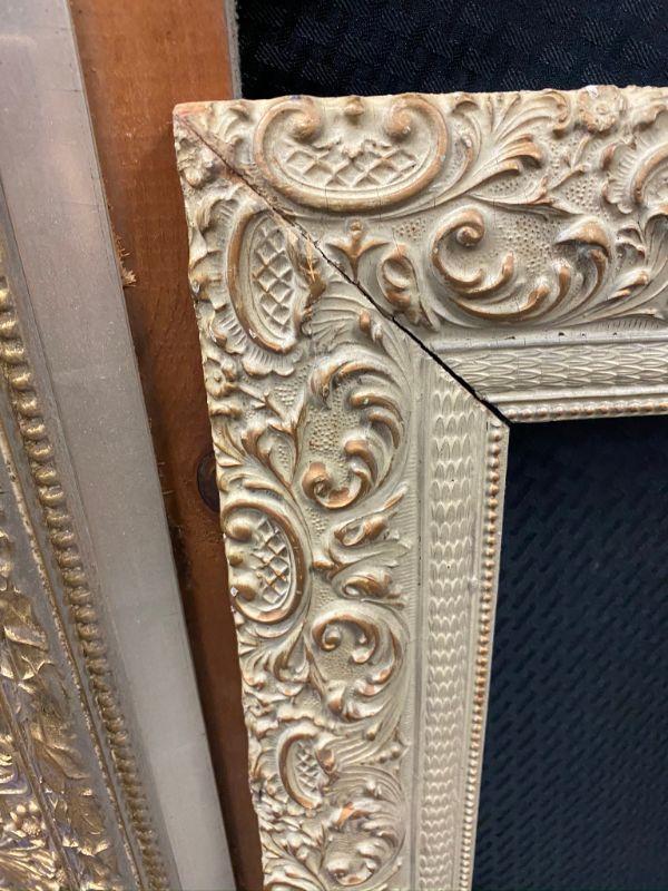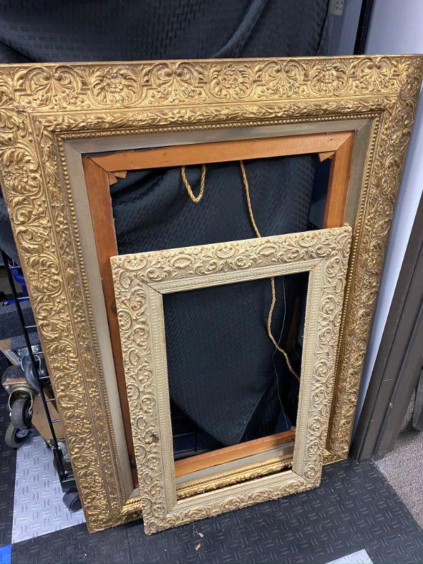 Pair of vintage frames. Ornate details. No glass. Some wear along edges & corners.