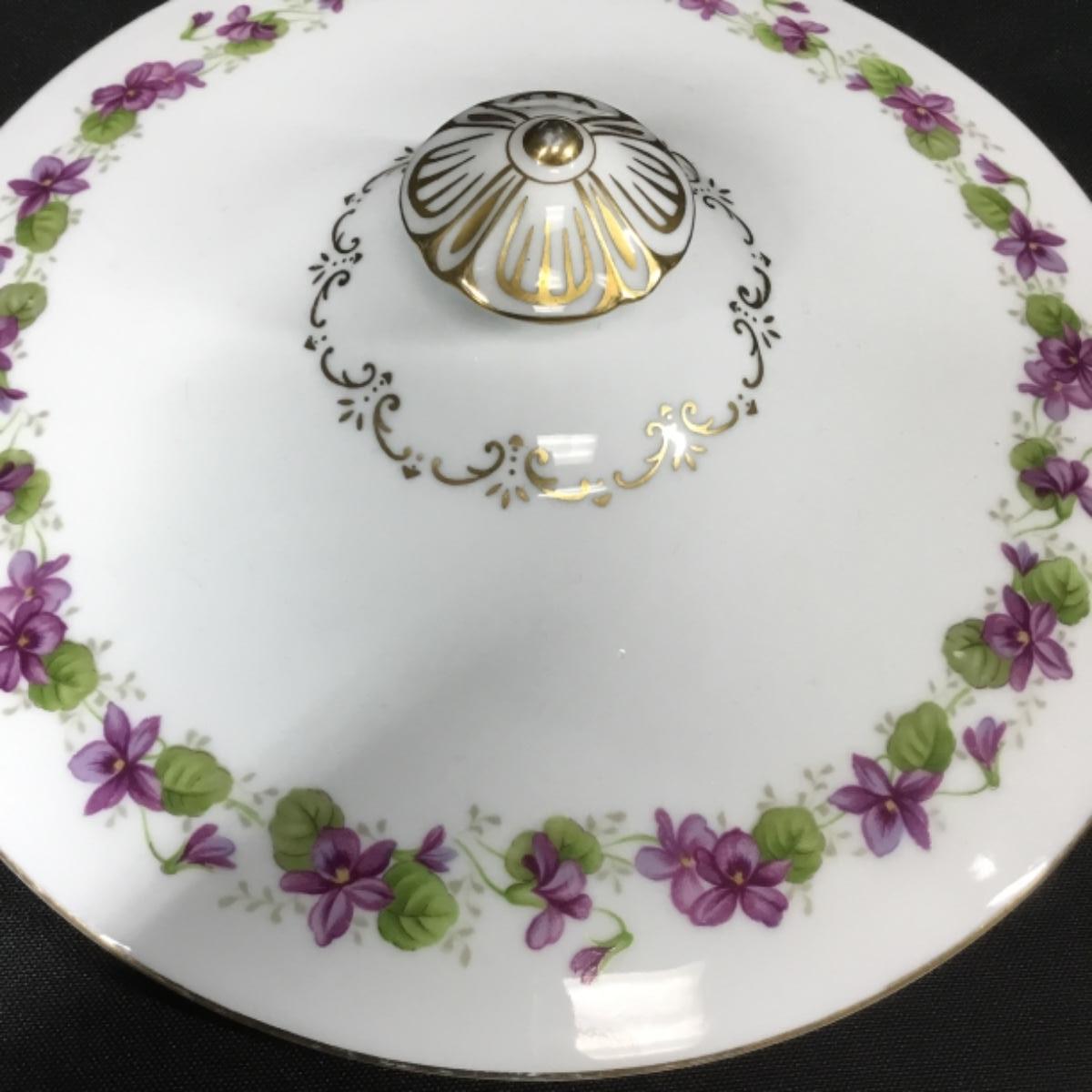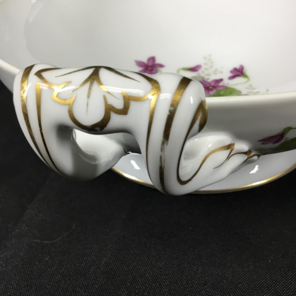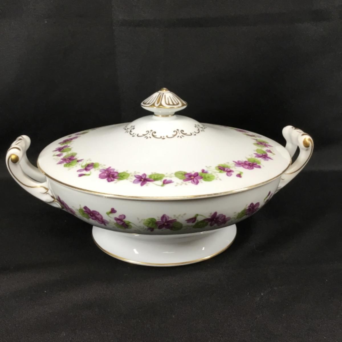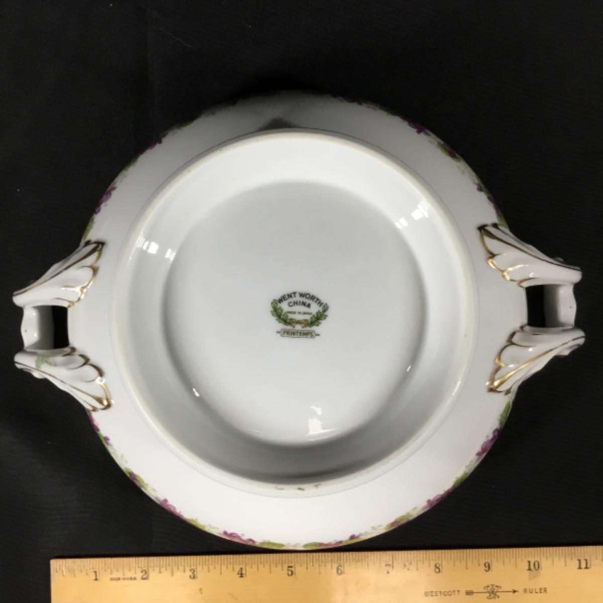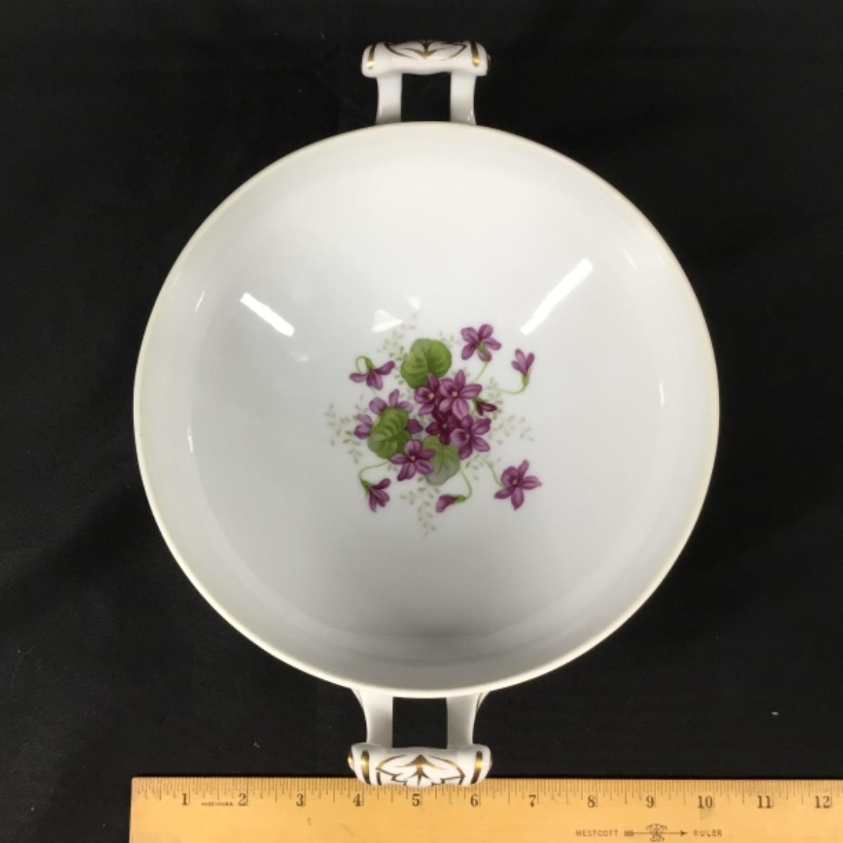 Purple Floral Wentworth China Serving Bowl Casserole Dish w. Handles