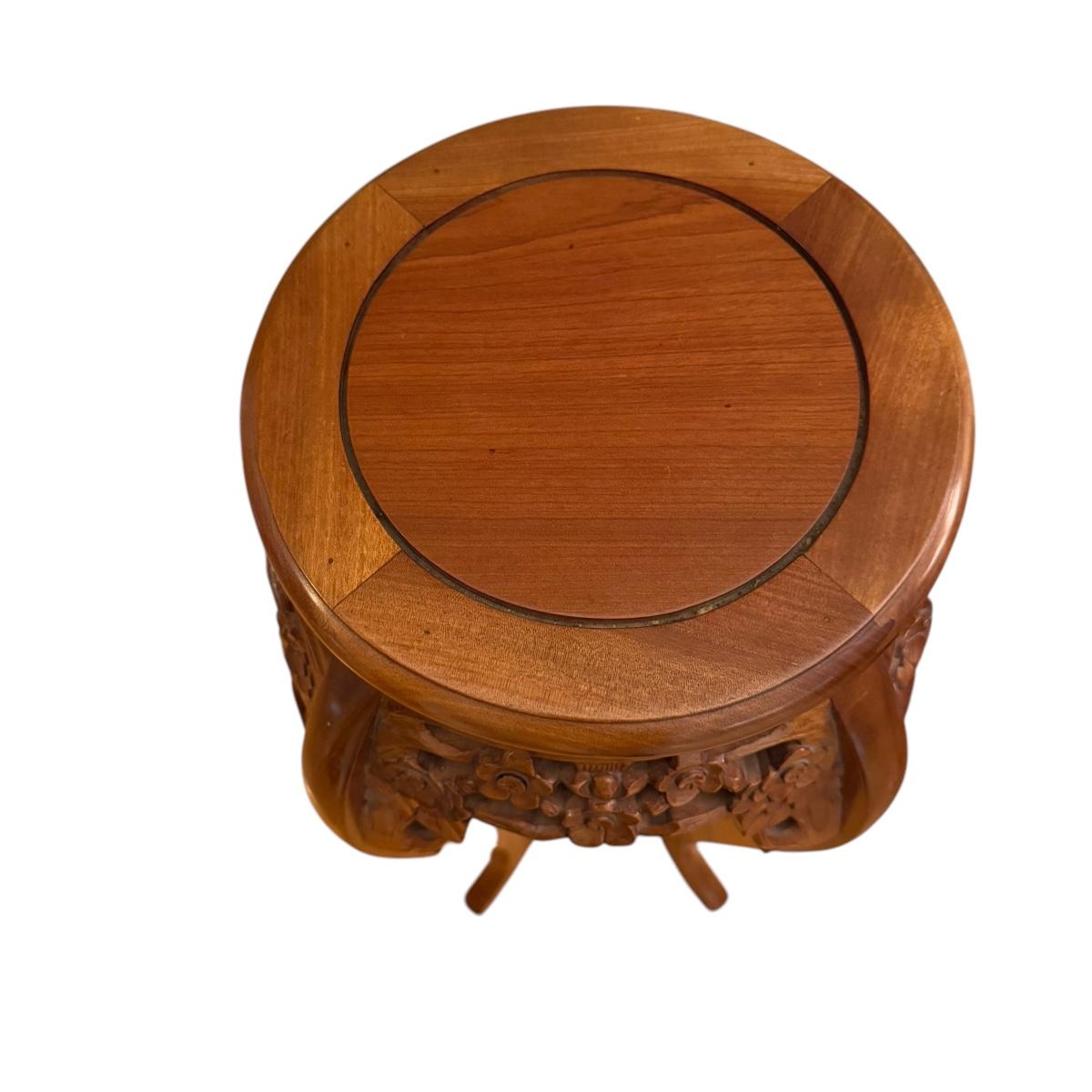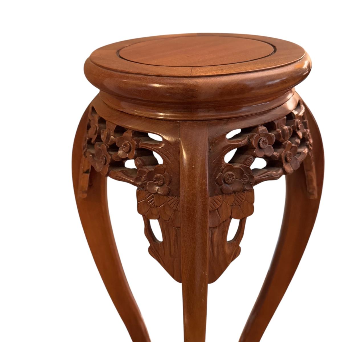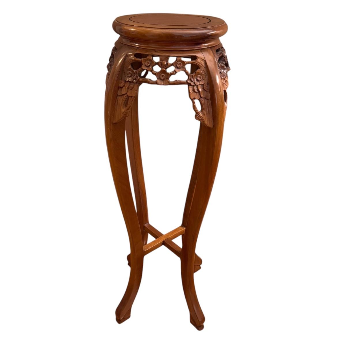 Lot includes one beautiful ornately carved wooden stand that would make for the perfect plant stand. It measures 11”D x 36”H. Local pickup only.