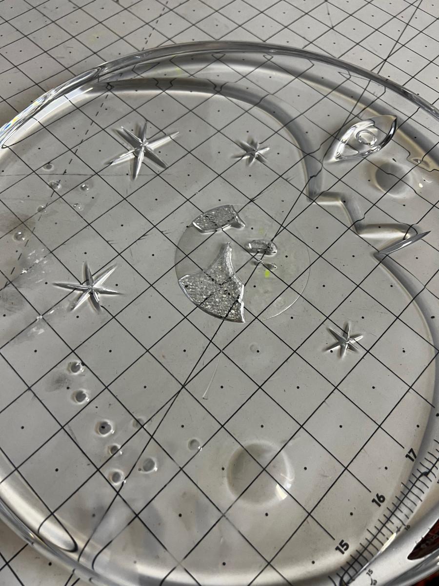 Orrefors ART - Heavy 1" Thick Glass Platter, World, Moon Stars