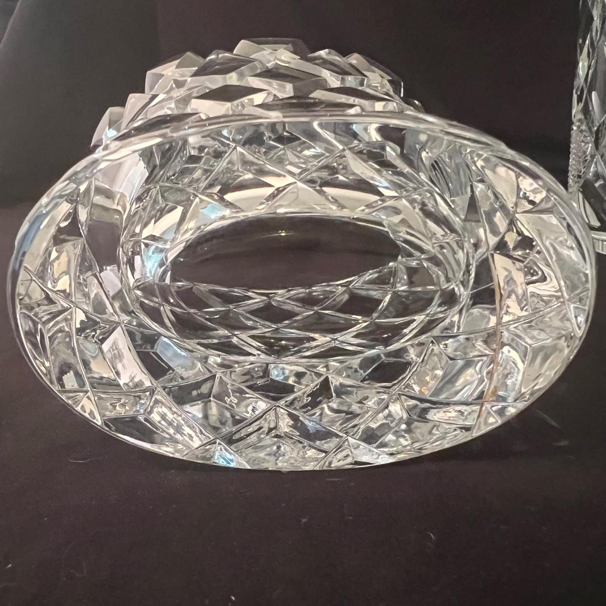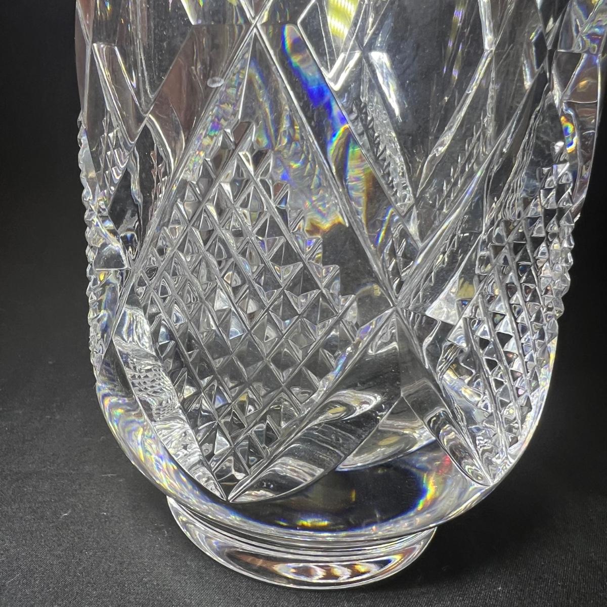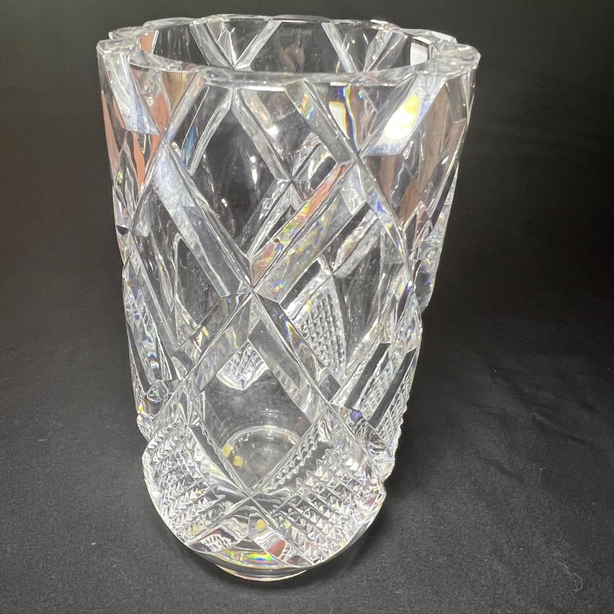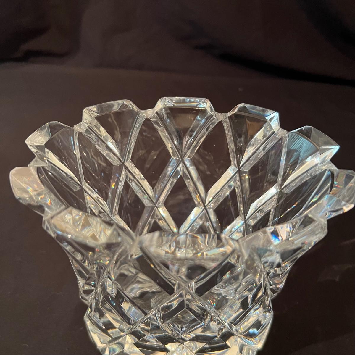 Two heavy crystal vases by Orrefors. Both have stickers and one also has Orrefors etched name. Taller vase measures 4”D x 8”H.
