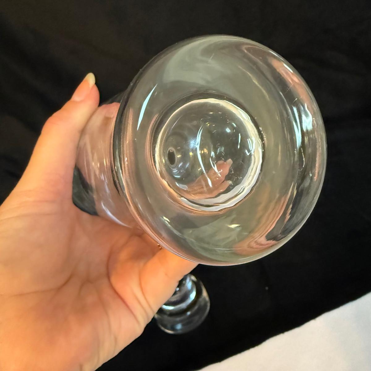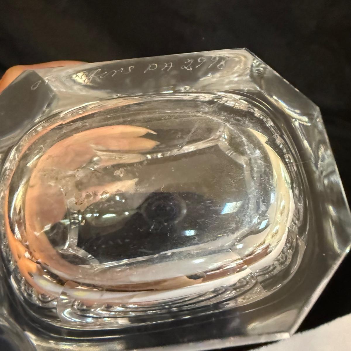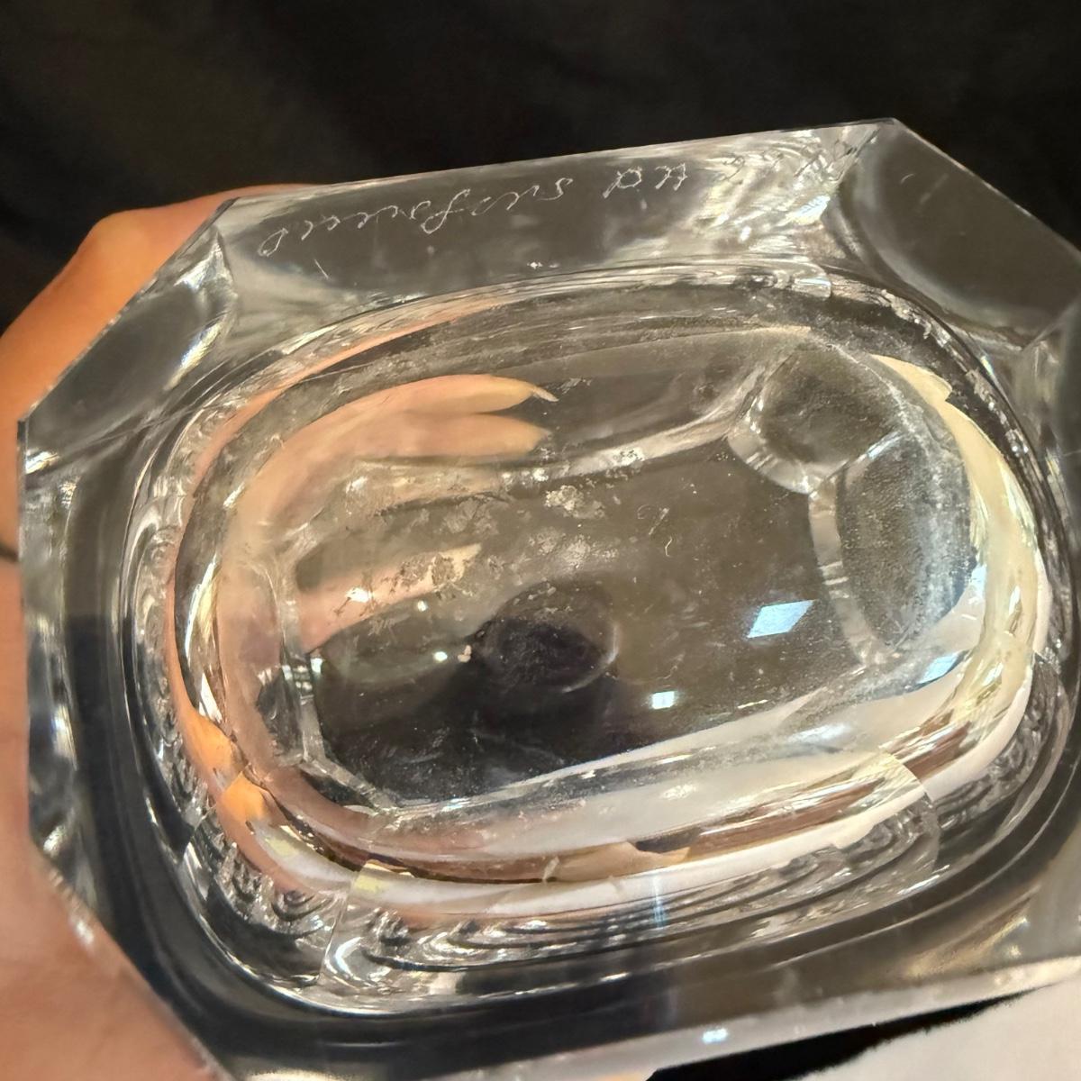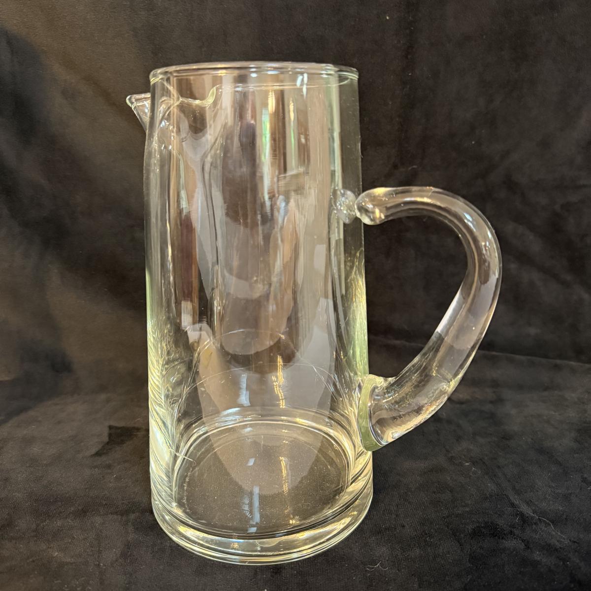 This lot contains a stunning Orrefors crystal decanter. This item measures 3” x 2” at the base and stands 13”H. Also included is another glass slender decanter and a glass pitcher. The pitcher measures 4.75”D at the base and stands 9”H. Shipping available.