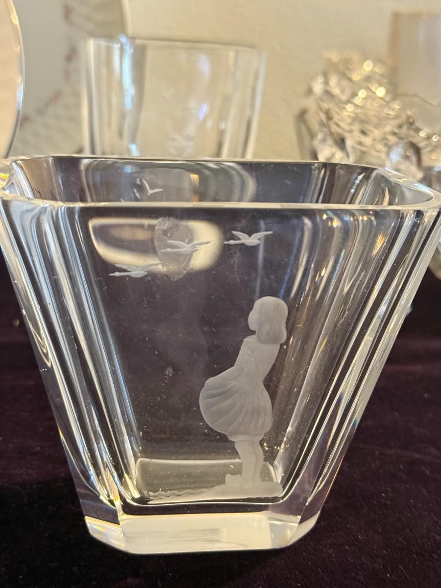 Pre-owned. Signed Orrefors Etched Crystal Vase