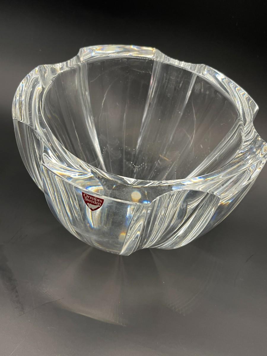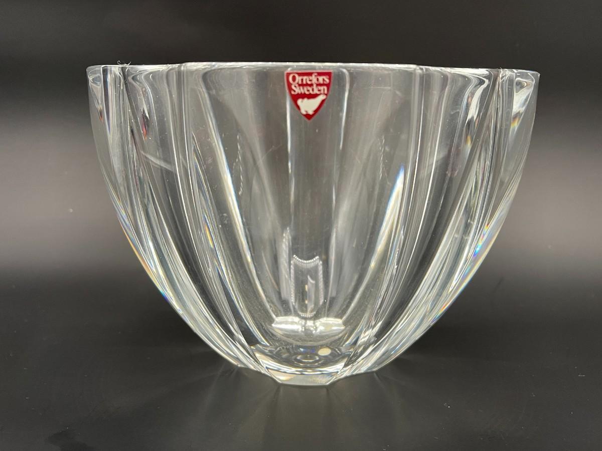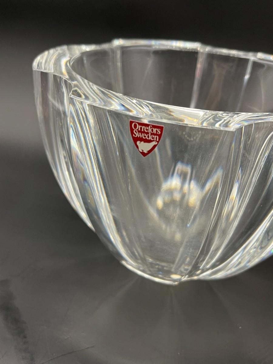 This bowl by Orrefors of Sweden is dramatic in visual weight despite being only 7" W x 5" H -- signed by artist. In excellent shape, with minor wear on the base. # 796