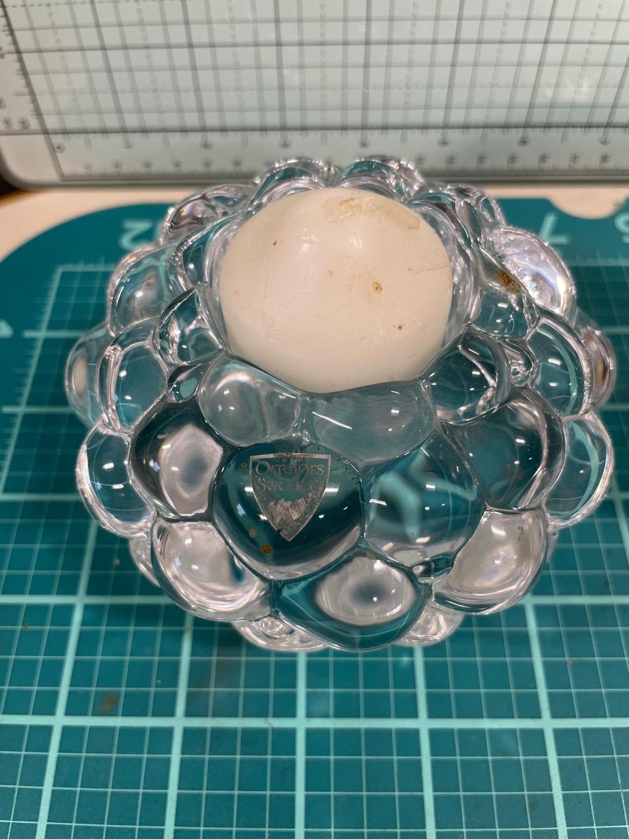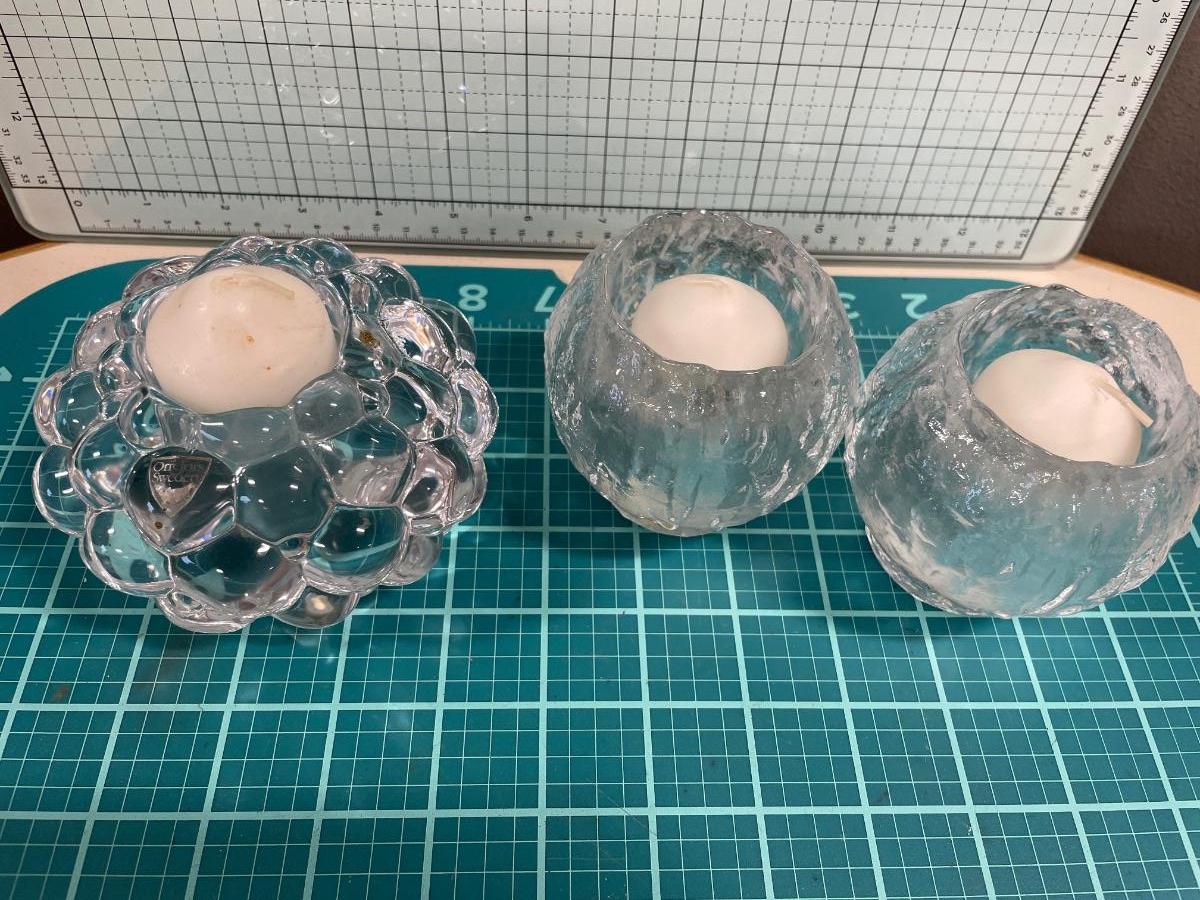 Orrefors raspberry votive & 2 Randsejordglass from Norway votives