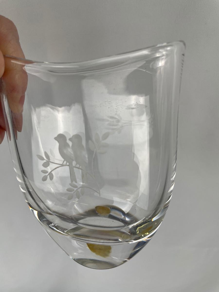 Orrefors Signed Niks Landberg Love Birds etched Crystal vase