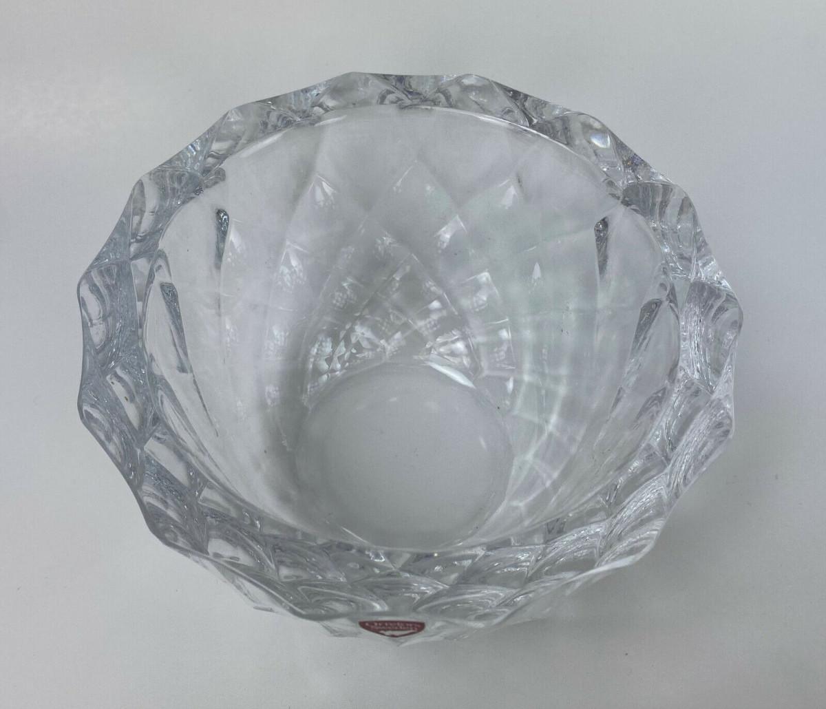 In pristine condition here is a marvelous piece of Swedish Crystal by Orrefors..the design of this 'haga' cut bowl is by artist Berit Johansson who was at Orrefors between 1979 and 1983 I believe...1" thick heavy wall..diamond pattern with scalloped edge...Signed on bottom...Measures 6" wide by 3 1/2" high