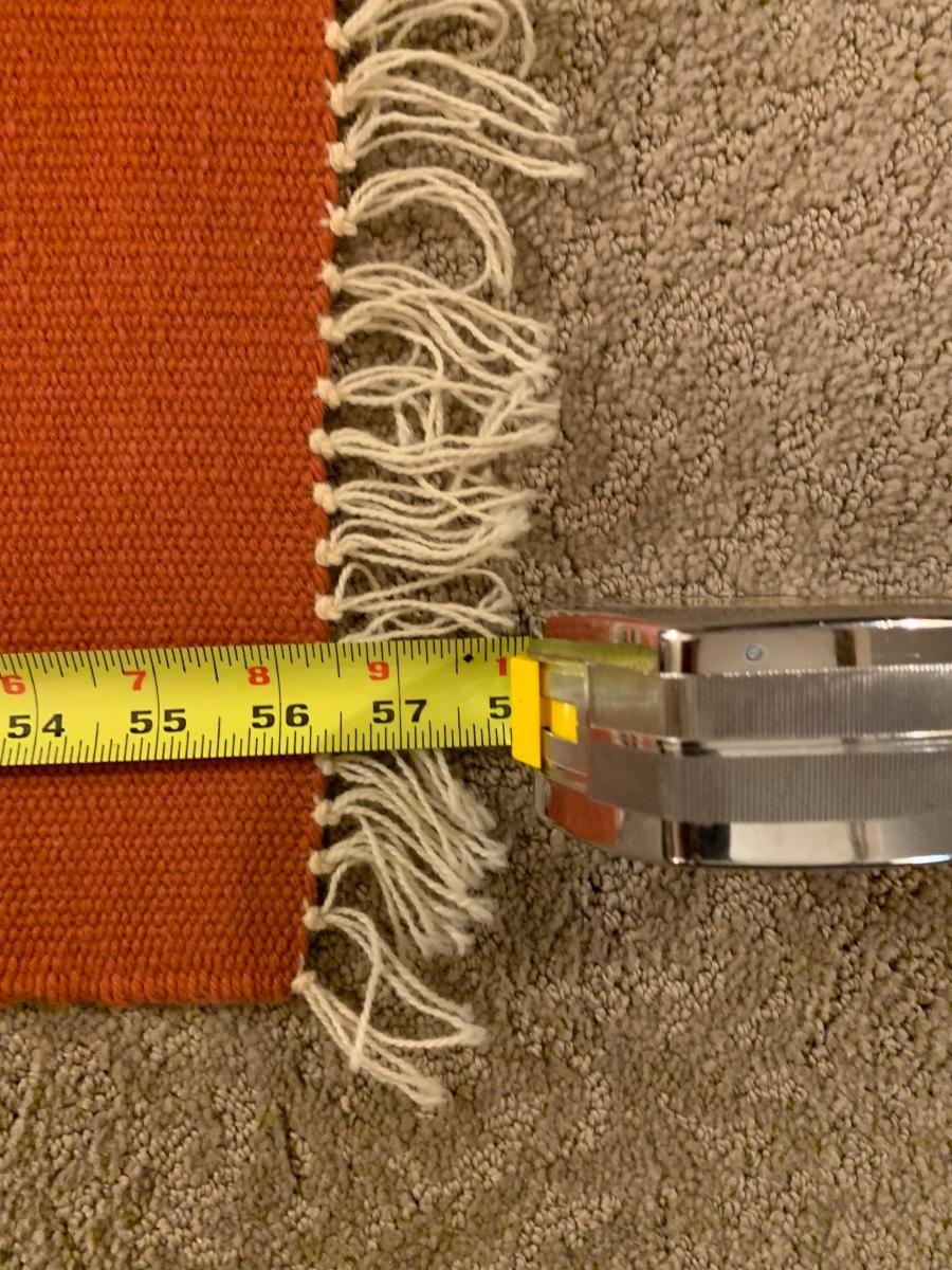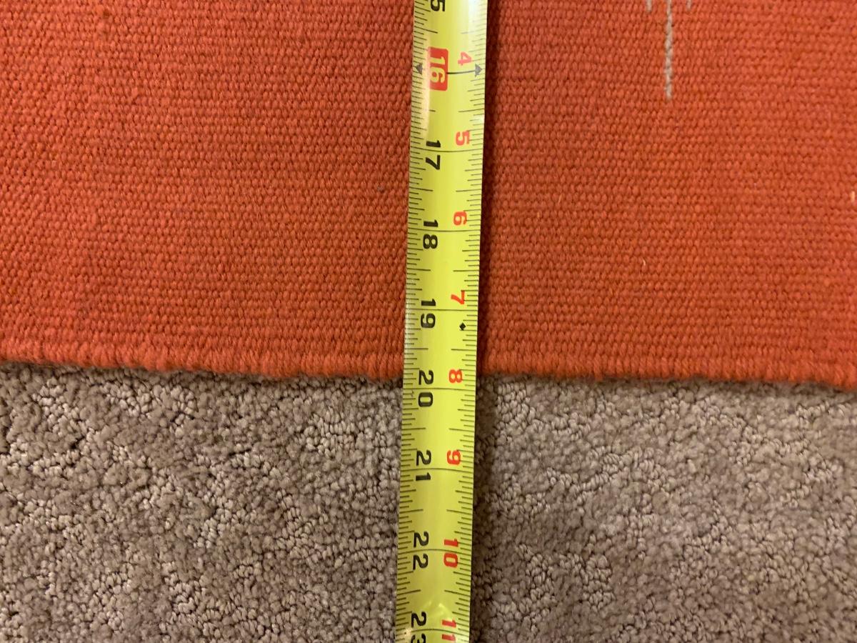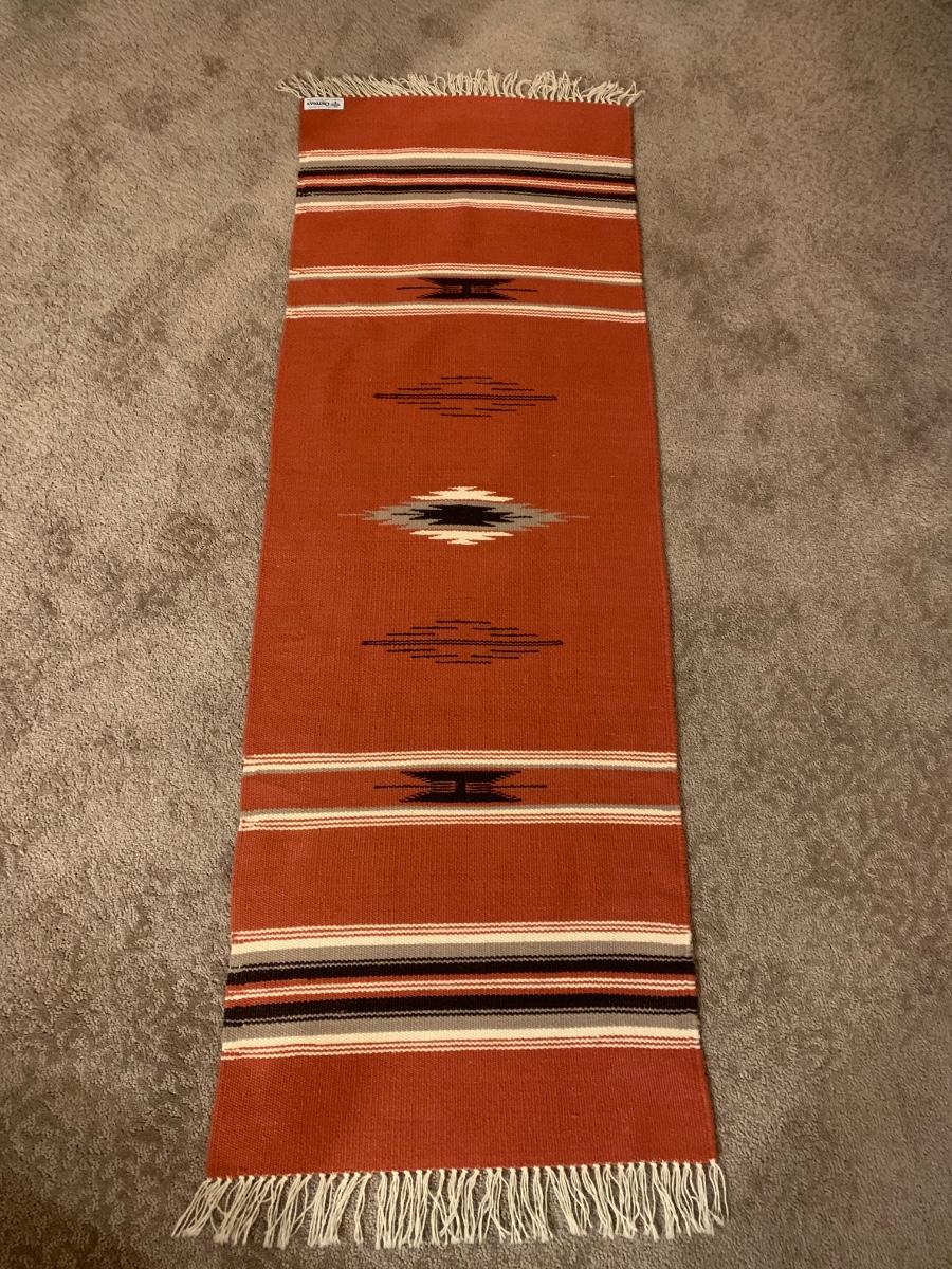 This beautiful rug from I Ortega’s in Chimayo, New Mexico measures 56” x 20”. In near perfect condition, this piece makes an amazing table runner!