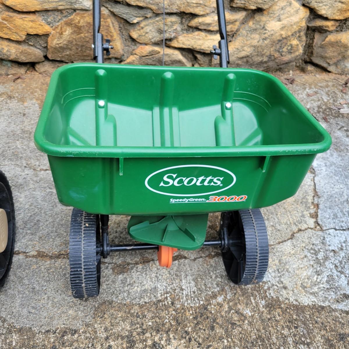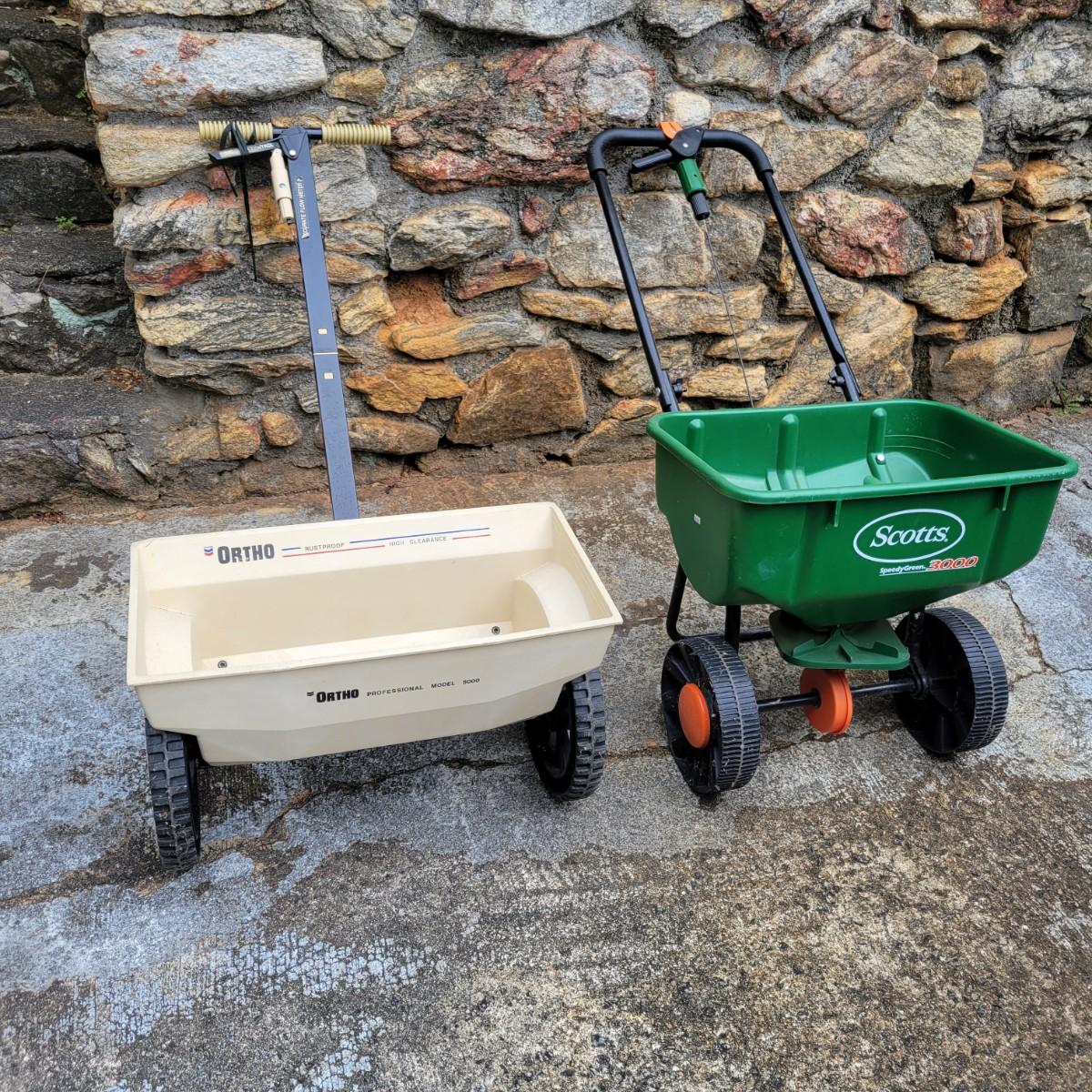 A pair of speaders that both work. One is a a Scott's Speedygreen 3000 and the other is an Ortho professional 5000 that measures approximately 23" x 39.5" x 29.5"H. Local pickup only