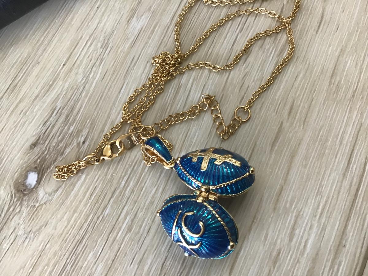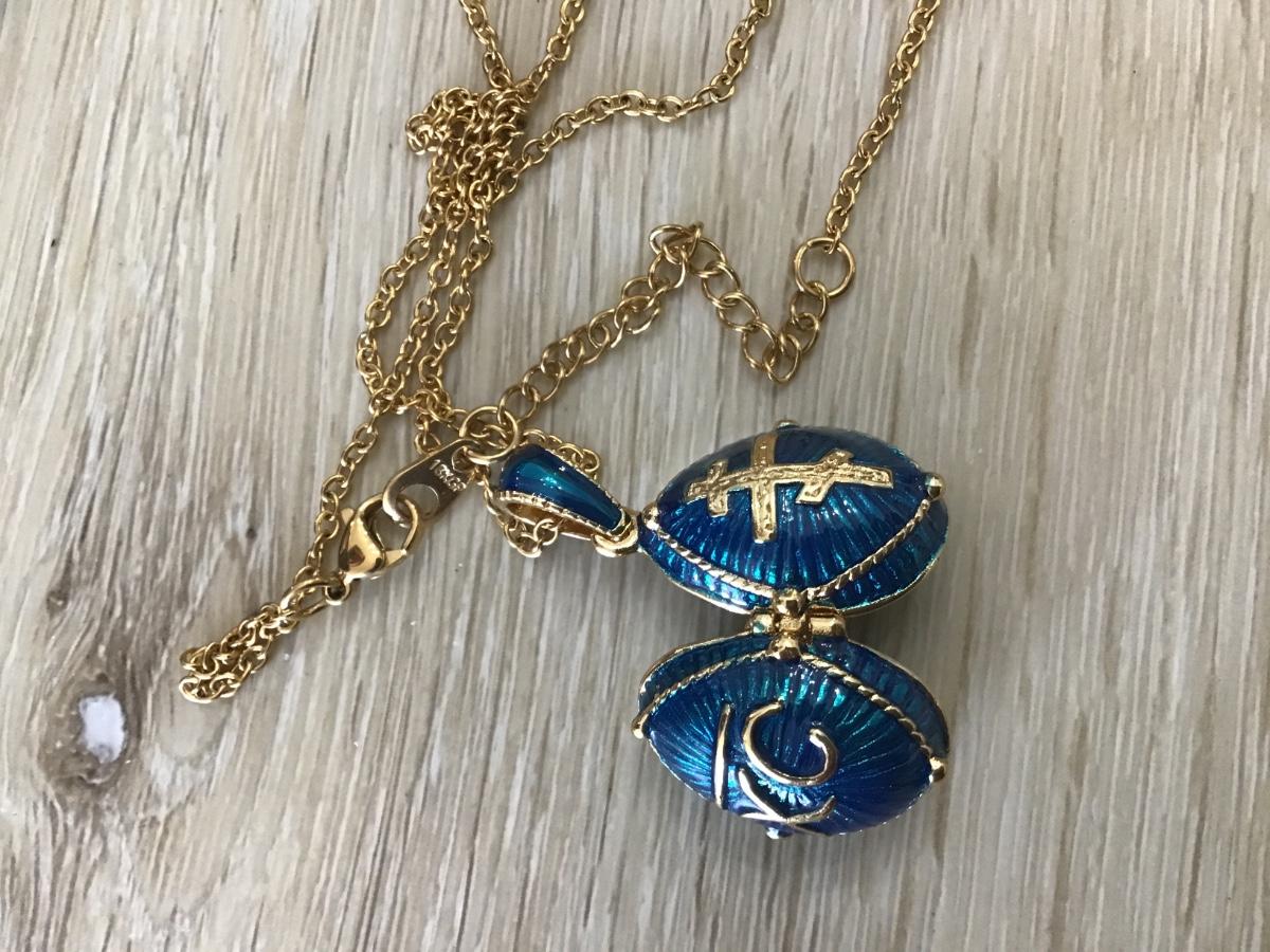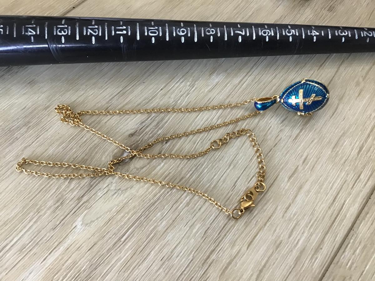 Orthodox Cross Egg Pendant (Turquoise) Locket 18 KGF Chain