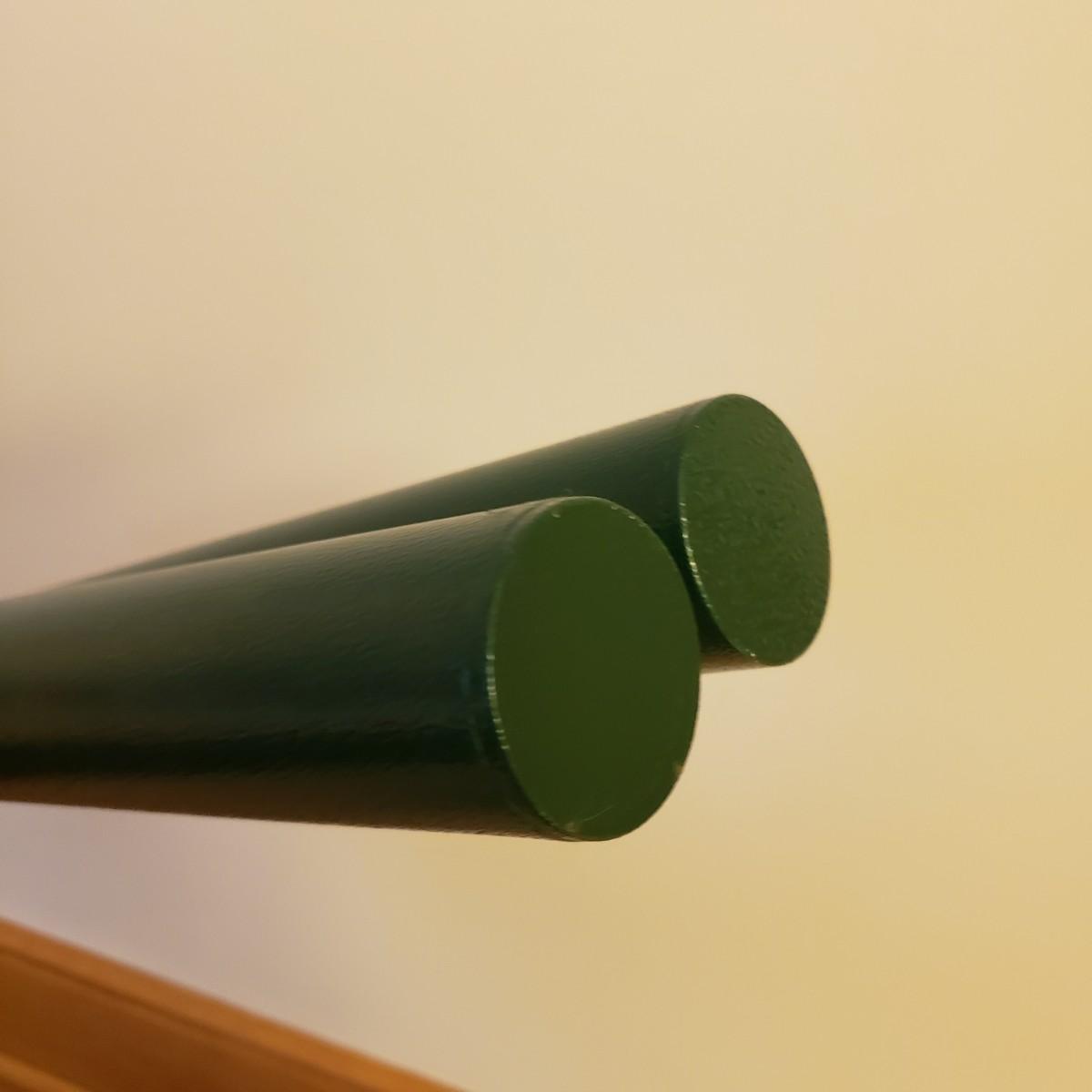 The longest Orvis rod case/tube measures 2" x 53"H. The case is metal with brass ends. The top end screws on. The two green cases/tubes are from R.L. Winston Rod Co. and measure approximately2" x 33"H. They are also made out of metal with a screw top. There are no rods with this lot, only the cases.