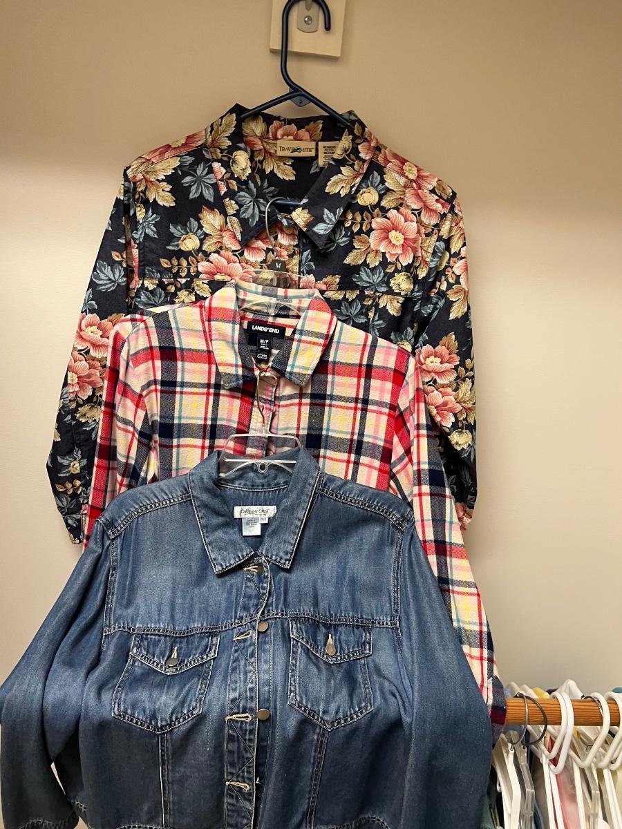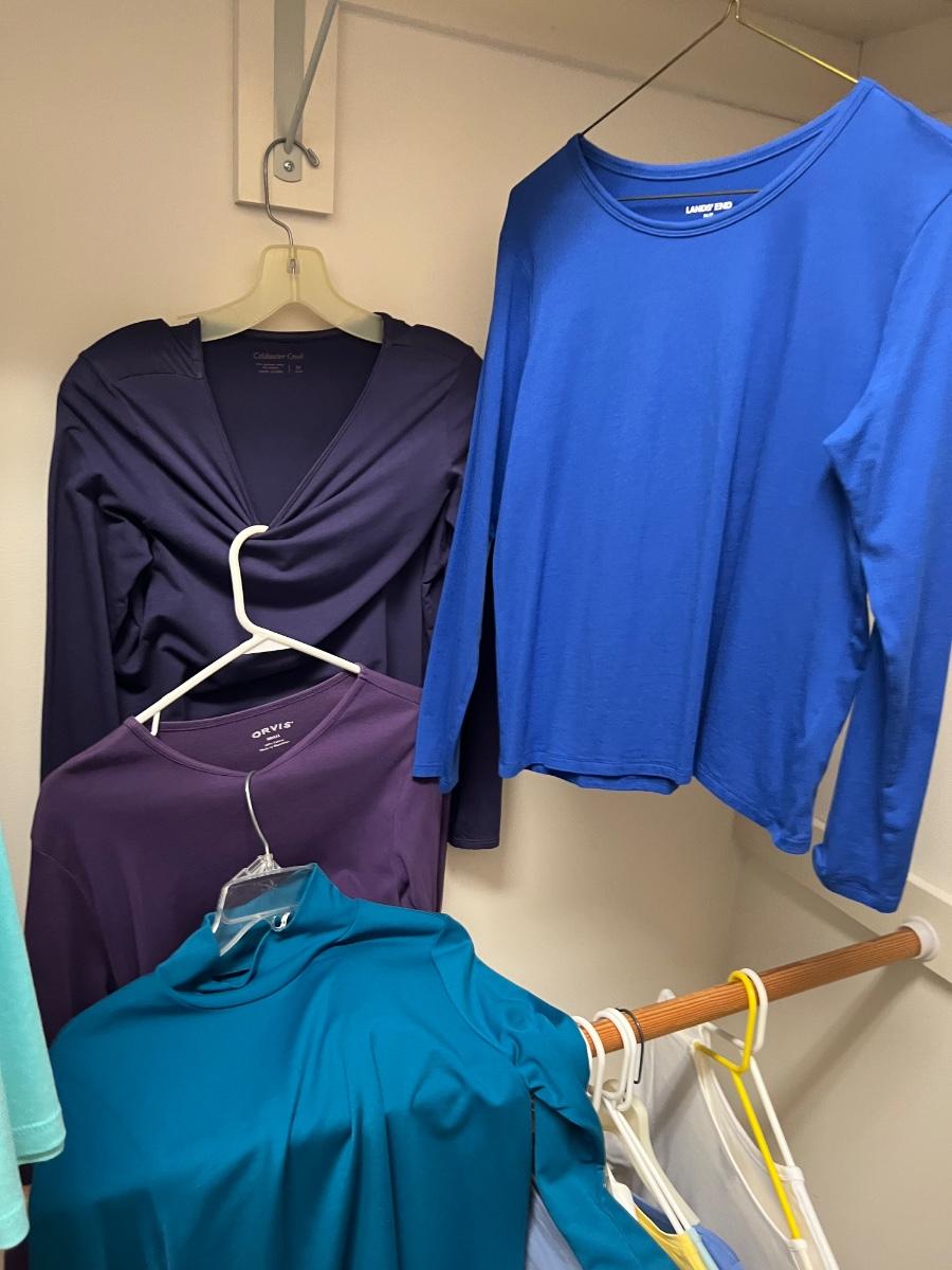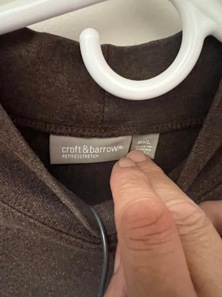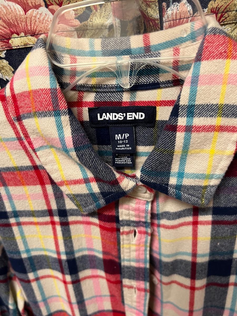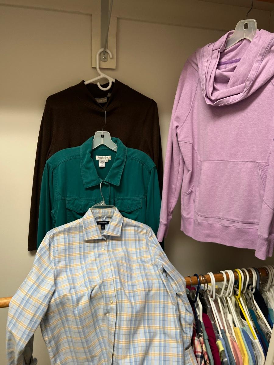 The vast majority of these items are size Medium, with some being petite and a few tops in size L and size S. Includes, sweaters, fleeces, t-shirts, long sleeves tee’s and pants. See images for sizes and brands.