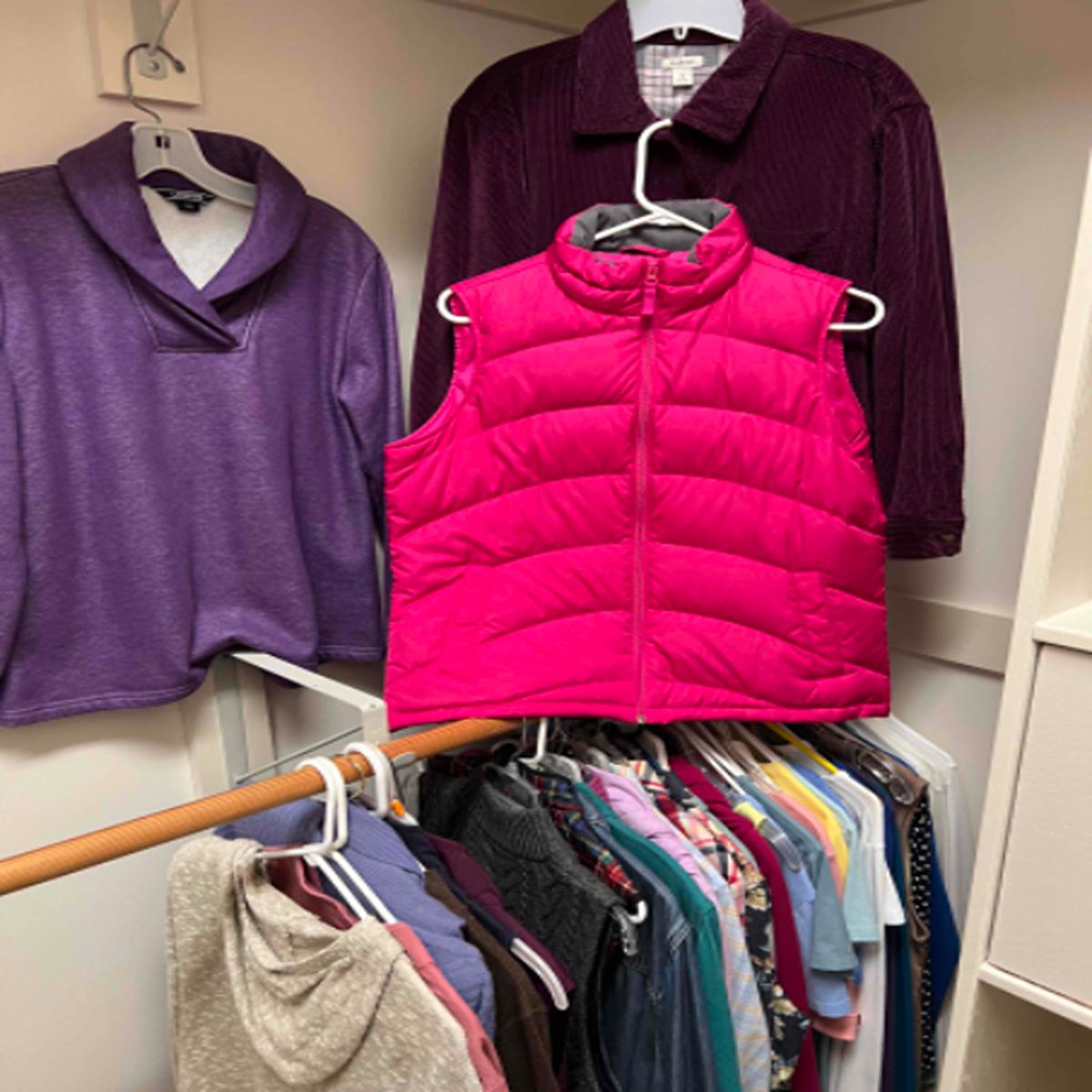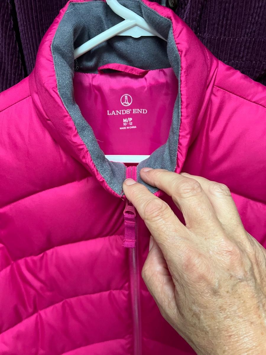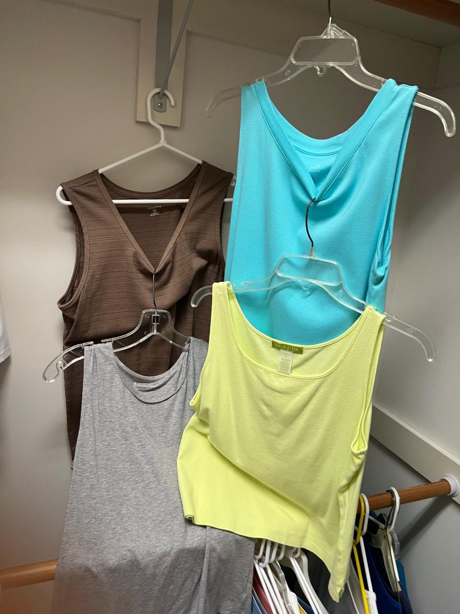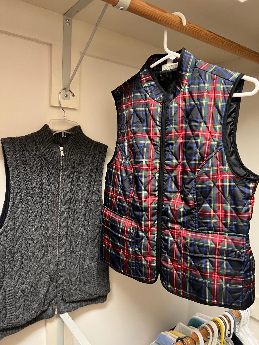 The vast majority of these items are size Medium, with some being petite and a few tops in size L and size S. Includes, sweaters, fleeces, t-shirts, long sleeves tee’s and pants. See images for sizes and brands.