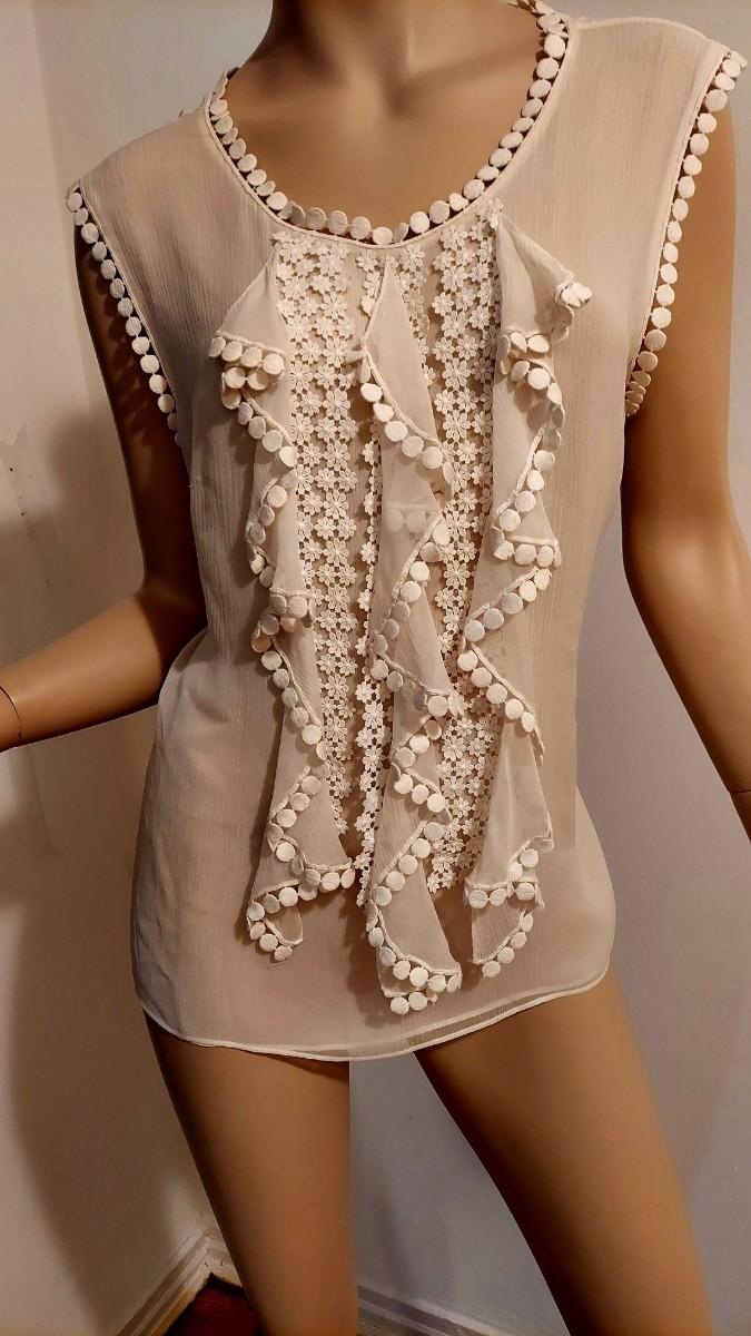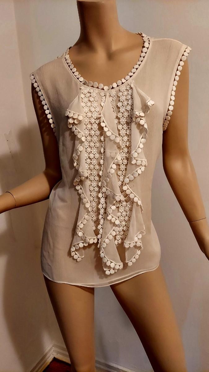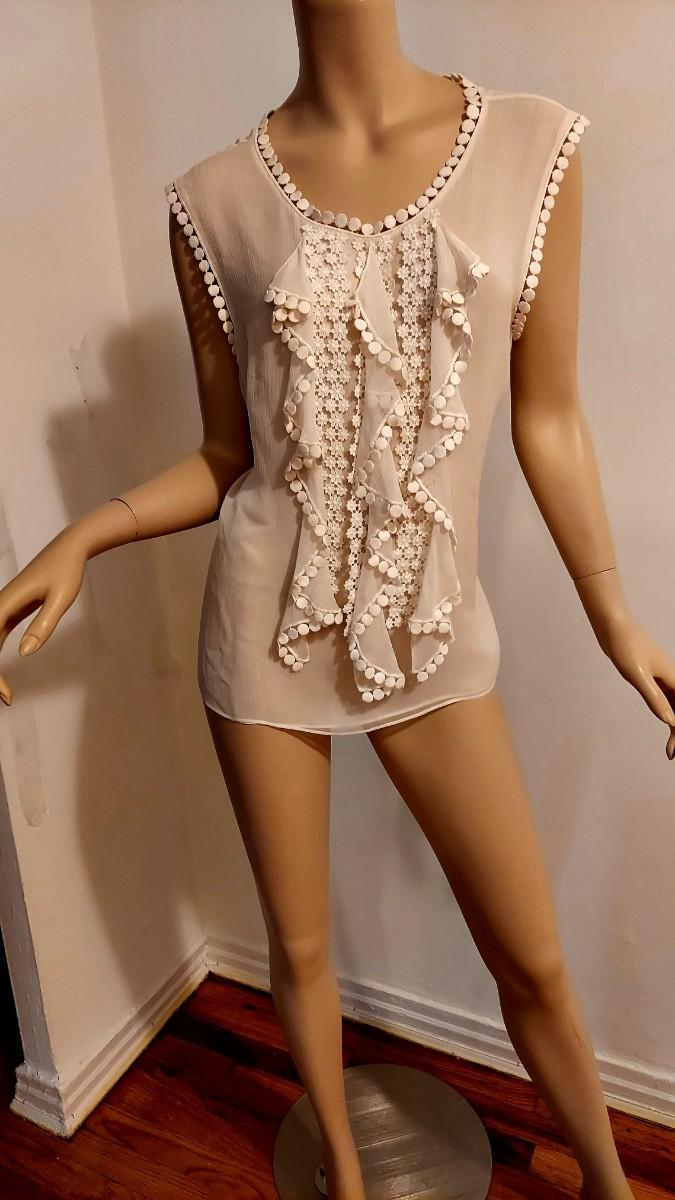 What a stunner this one is. Couture Oscar de la Renta Silk Shirt with Ruffles and Embroiidered lace trim Applique.