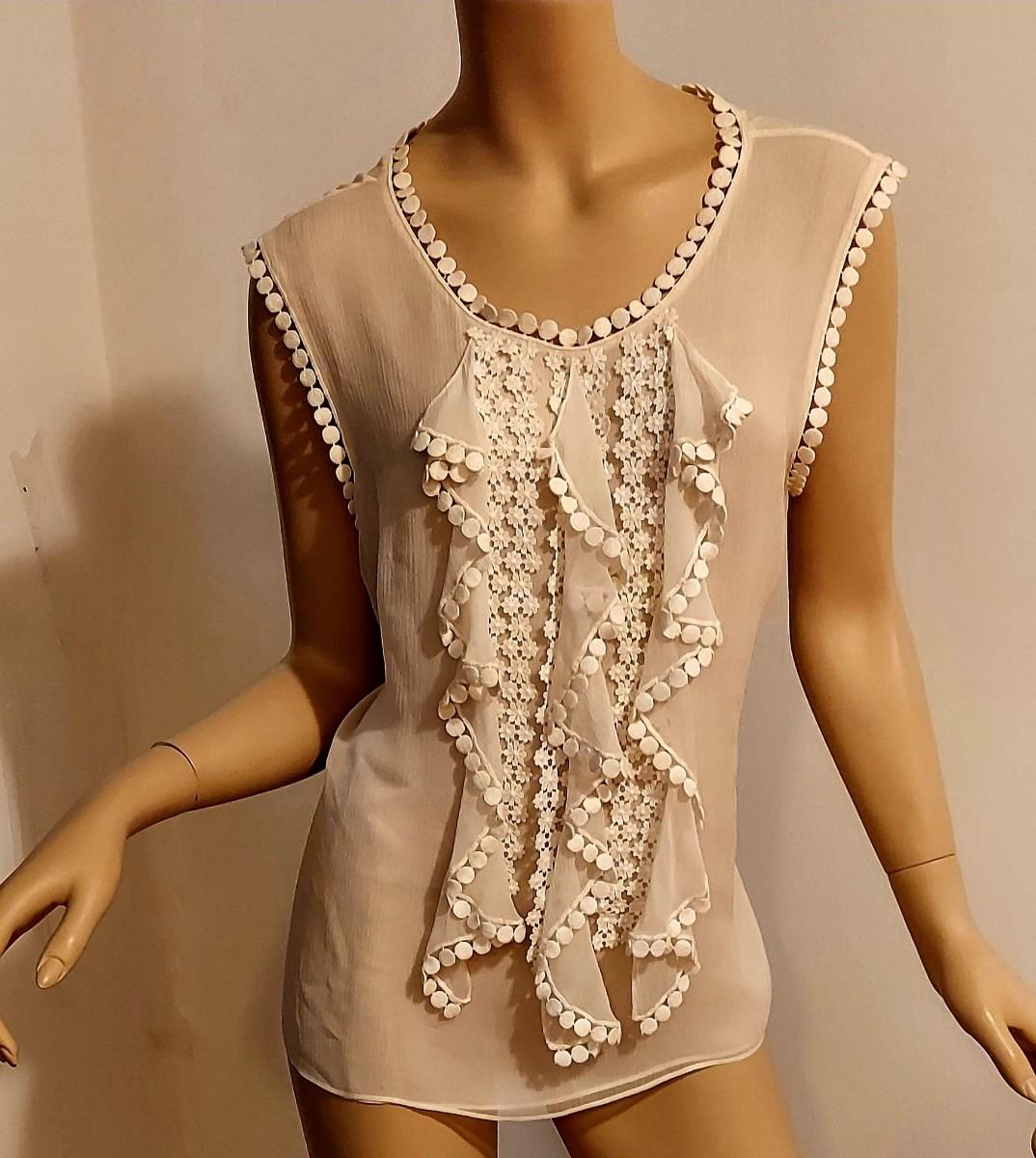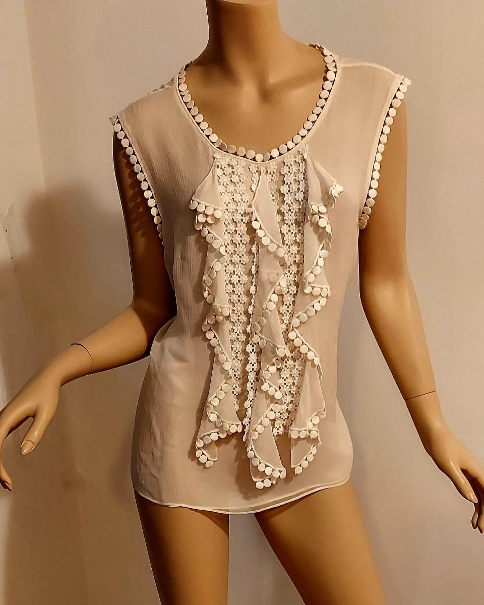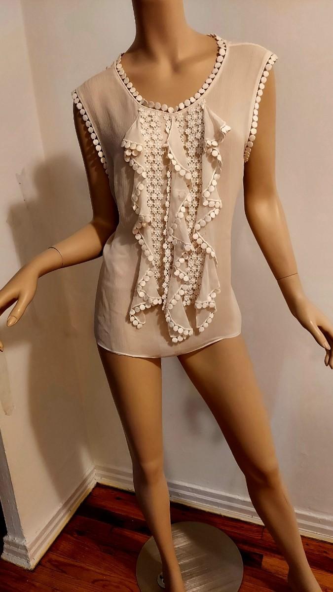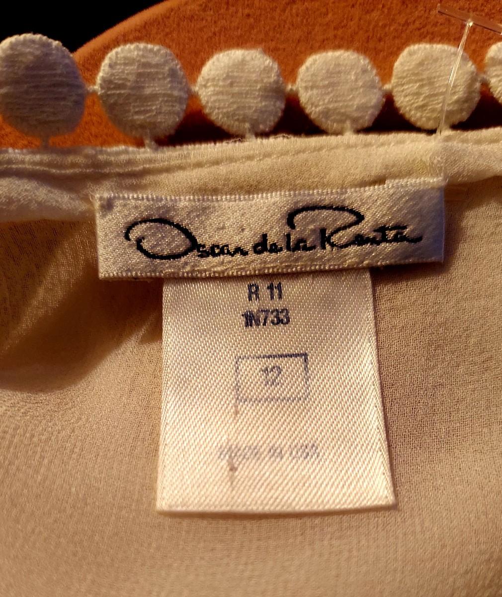 What a stunner this one is. Couture Oscar de la Renta Silk Shirt with Ruffles and Embroiidered lace trim Applique.