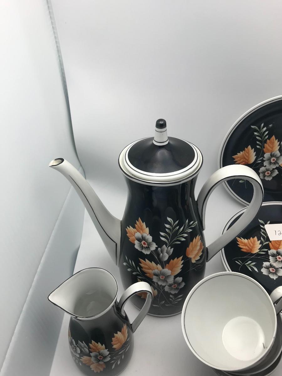 Service for six. Coffee pot, sugar and creamer. Some scratches.