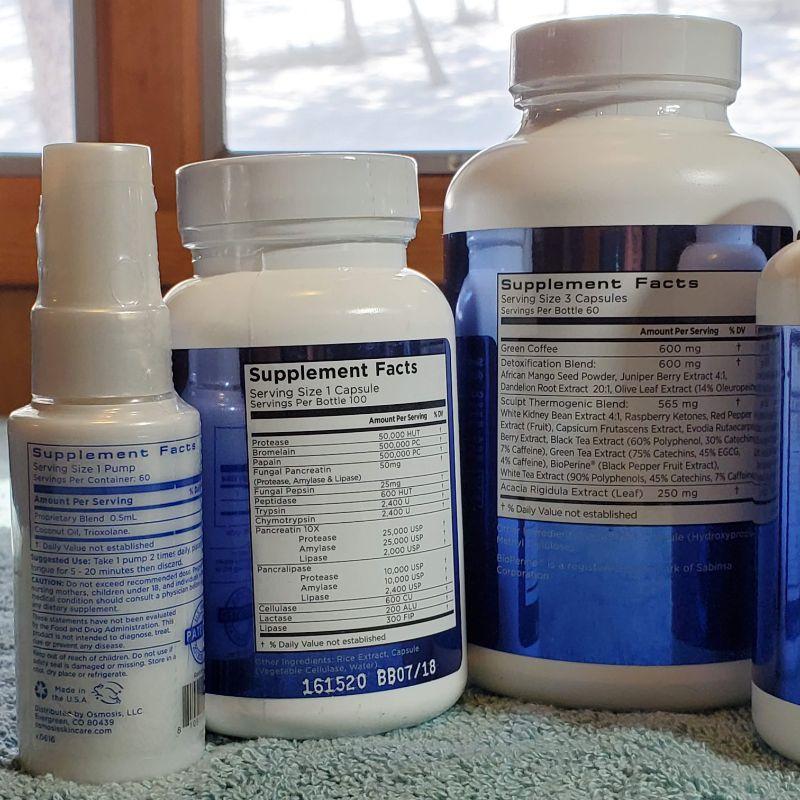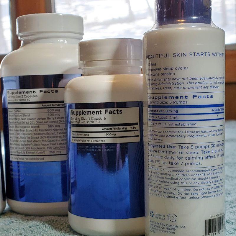 Osmosis Pur Medical Skincare and Supplement Harmonized H20 Assorted Lot of 5 (Relax, Complete Digestive Enzyme, DIM Diindolylmethane, Melt Fat Detox, Restore, Immune Repair Elixir)