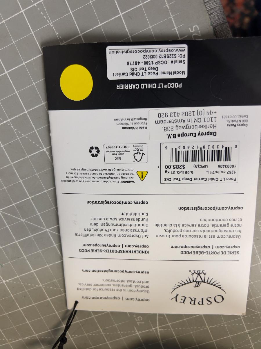 OSPREY Large Green Poco Light Child Carrier (or Dog)