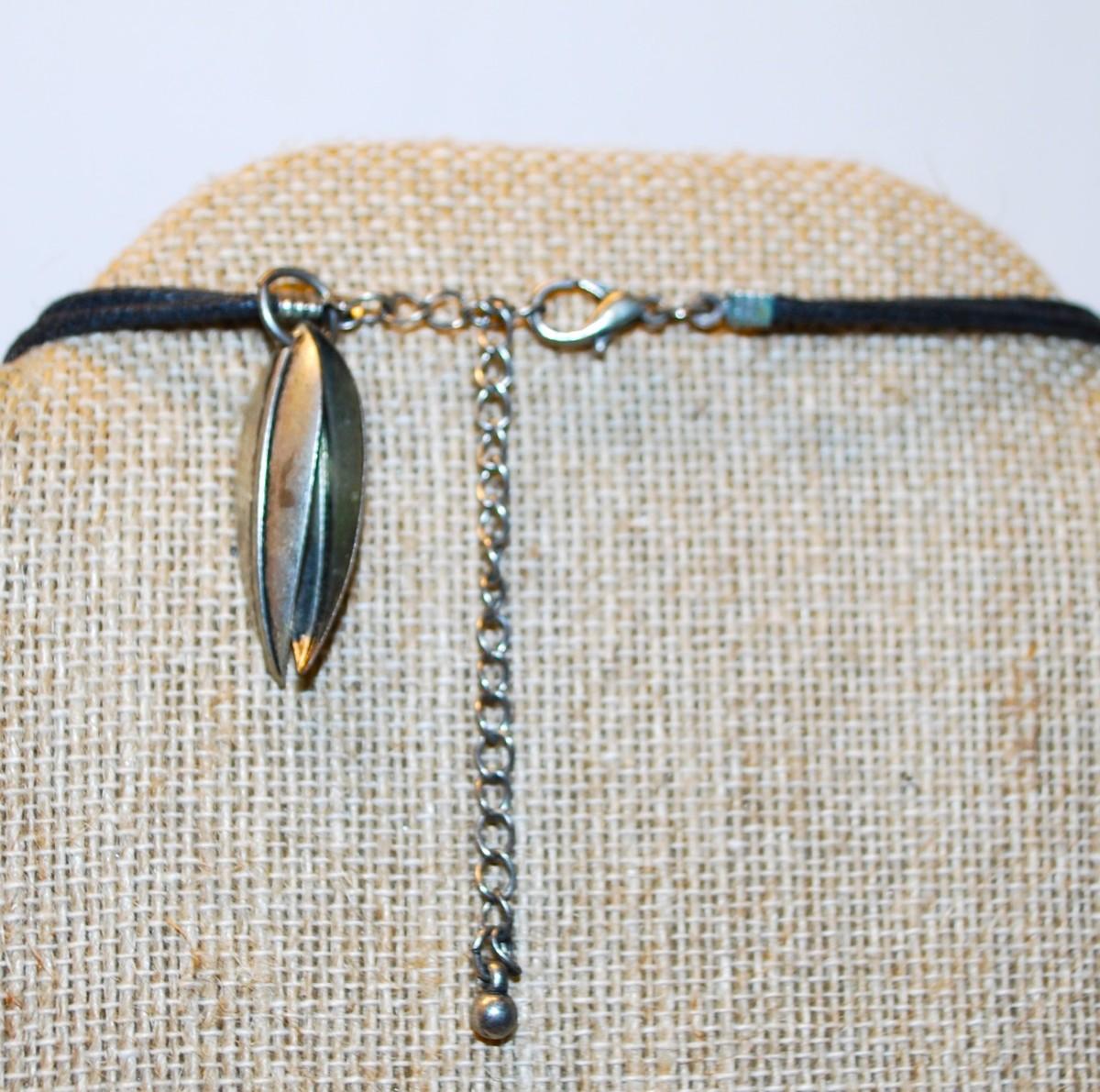Ostentatious Double Row "Metal Leaves & Ringlets" Necklace on a Black Rope Necklace Chain 14" L