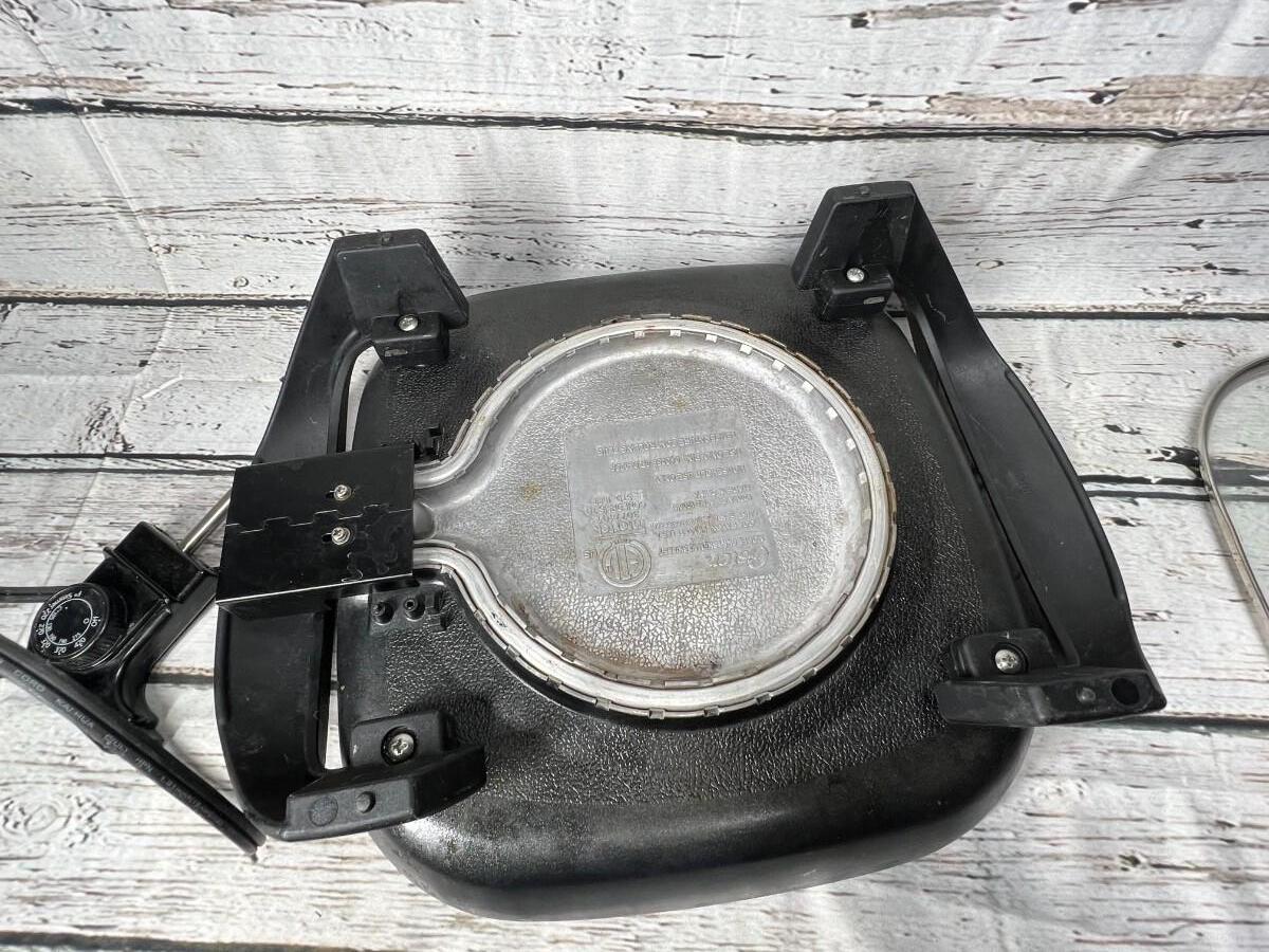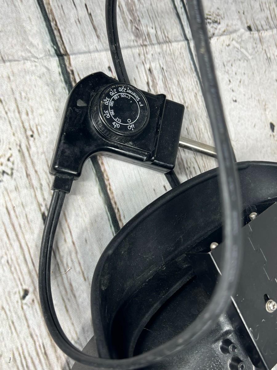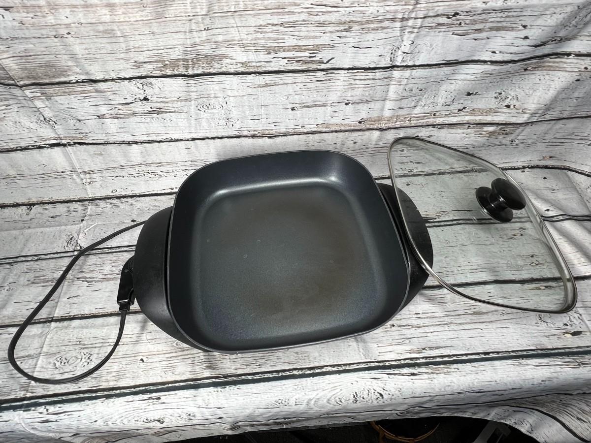 Oster 12" Black Electric Skillet, there are some signs of use on the skillet, but there is no significant damage and is in good condition. Has not been tested, check pictures for more details and for sizing.