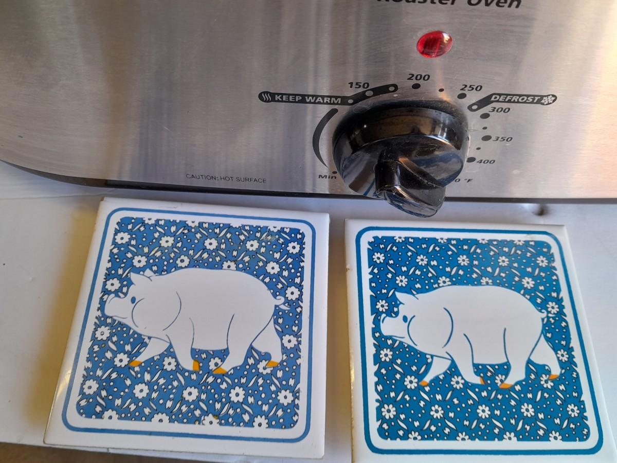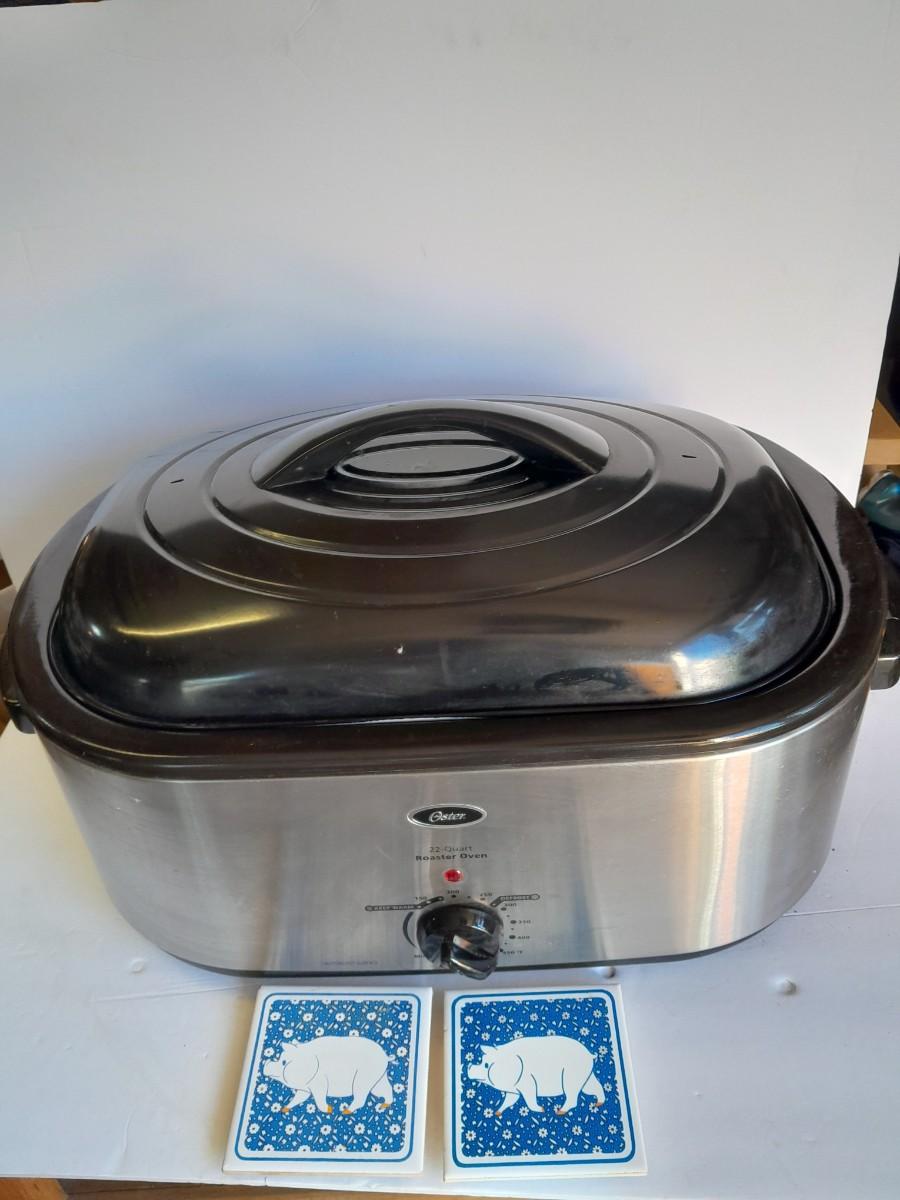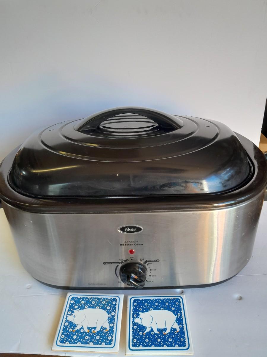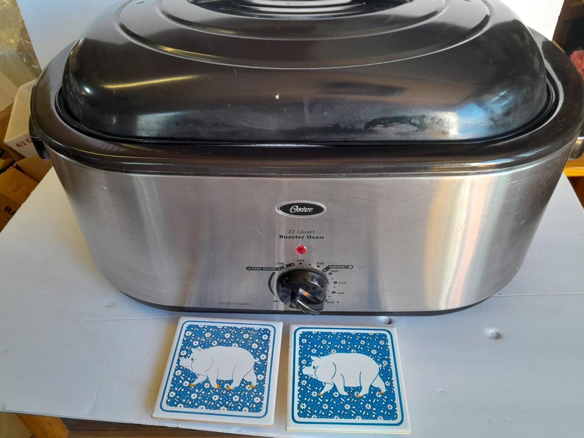 Oster 22 -Quart Electric Roaster Oven with small tile Pig Trivets