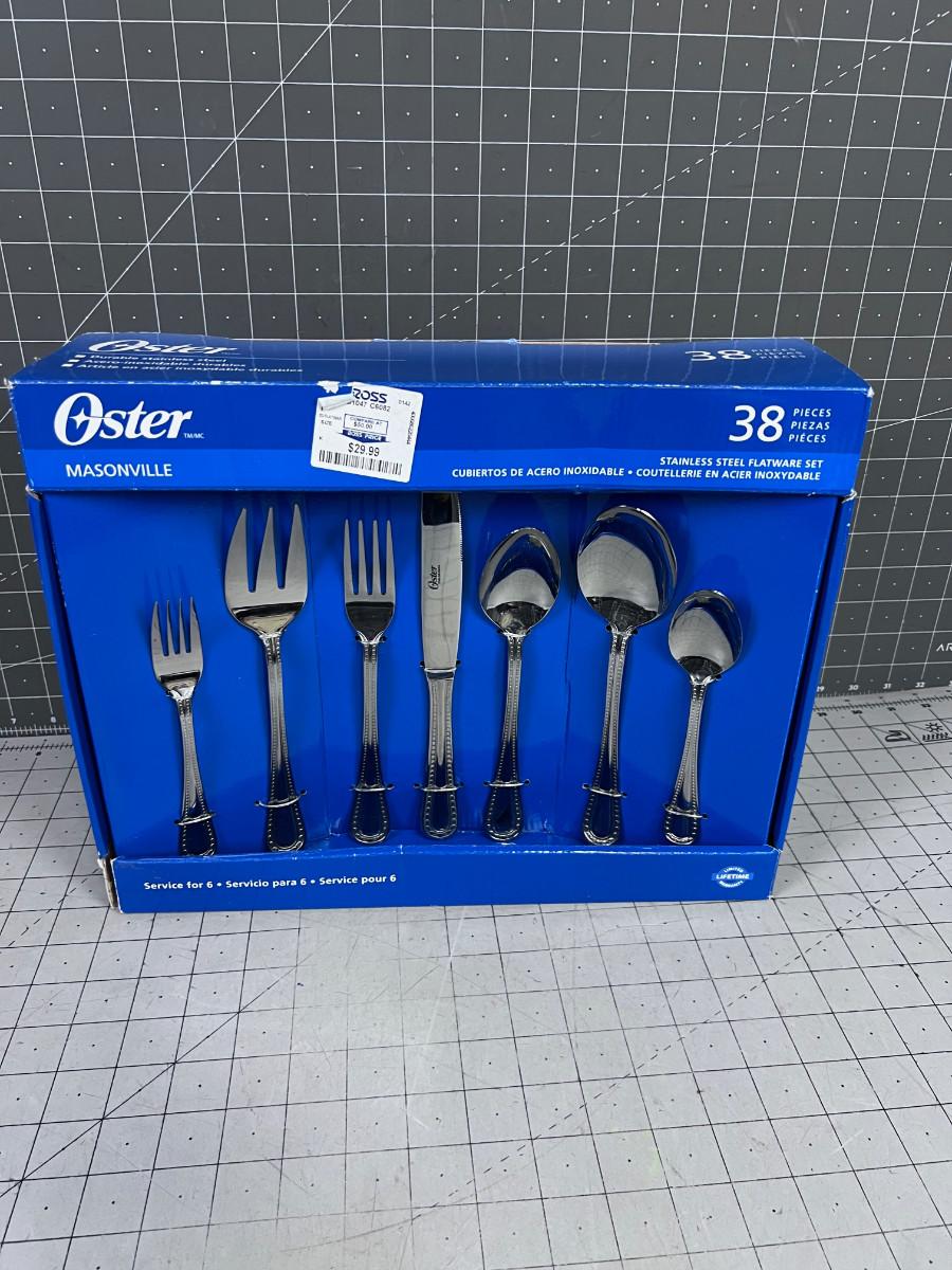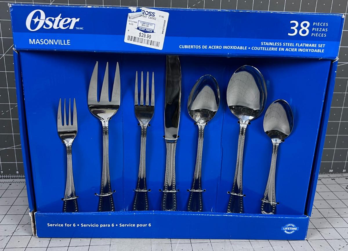 OSTER MASONVILLE NEW 38 Piece Stainless Steel Flatware Set NEW