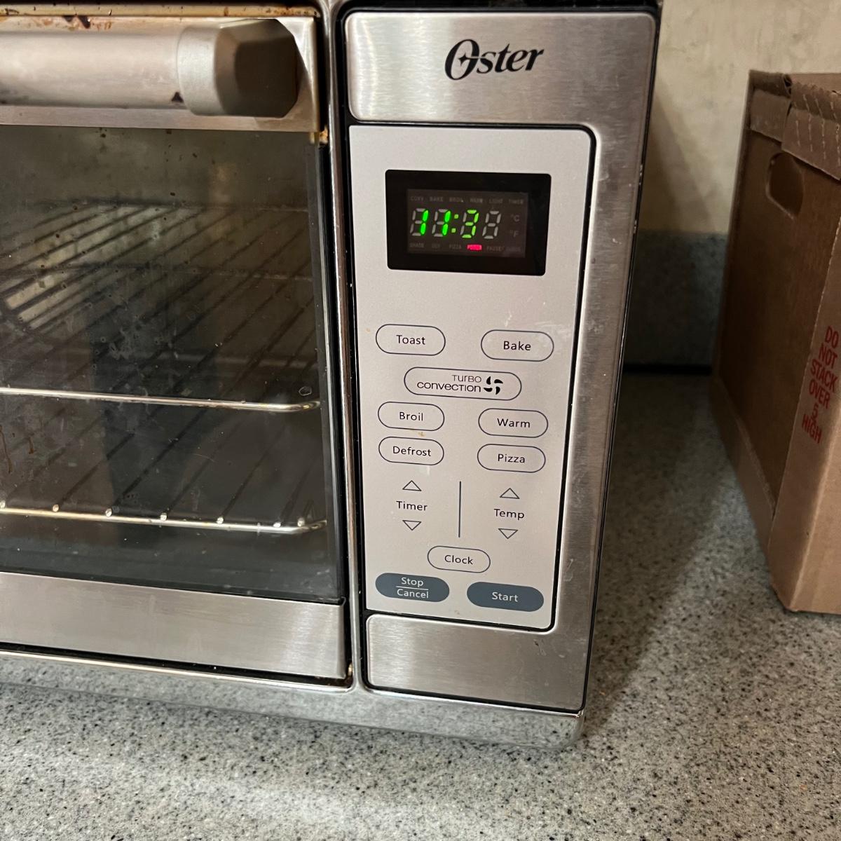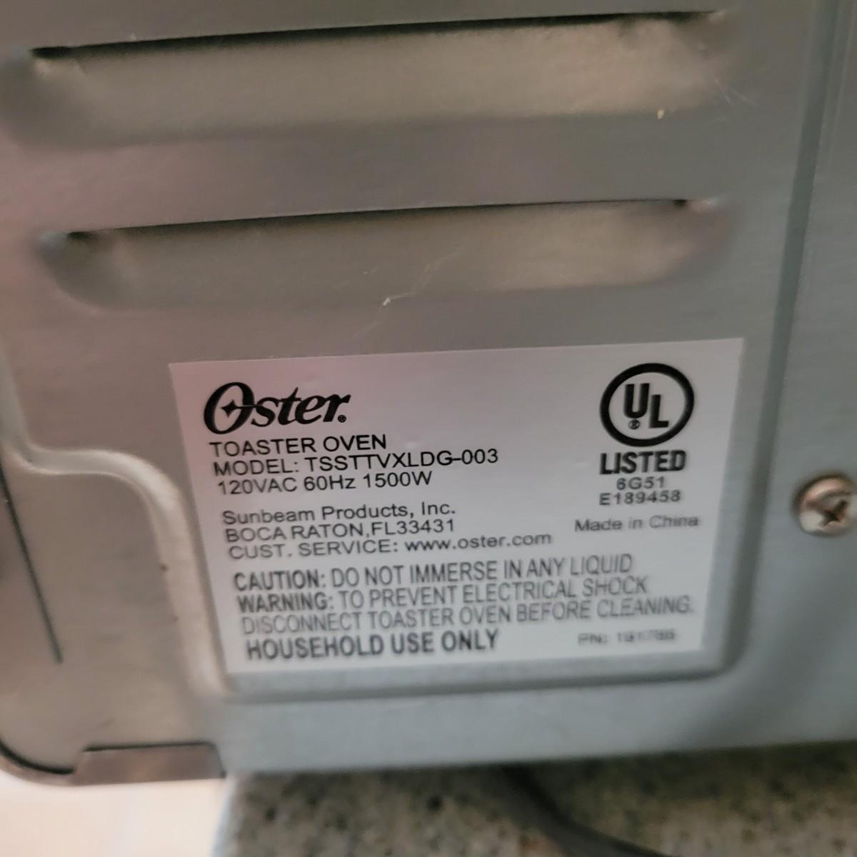 An Oster toaster oven and Hamilton Beach toaster that powered on when plugged in. The toaster has two slots with seven levels of toasting. The toaster oven has two wire racks, includes two heavy duty pans and measures approximately 21.5" x 19" x 13"H. Local pickup only