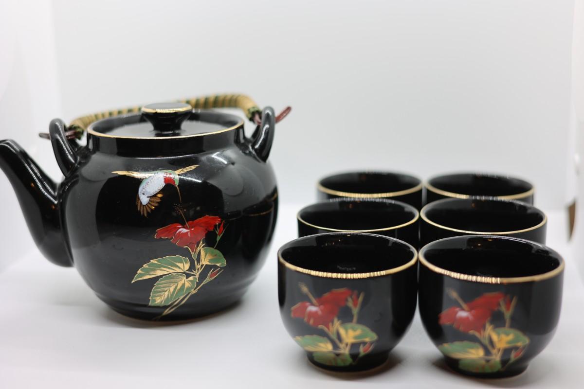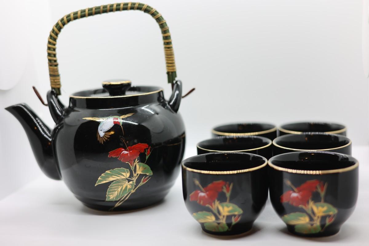 OTAGIRI Vintage Tea Set With 6 Cups and Rattan Handle