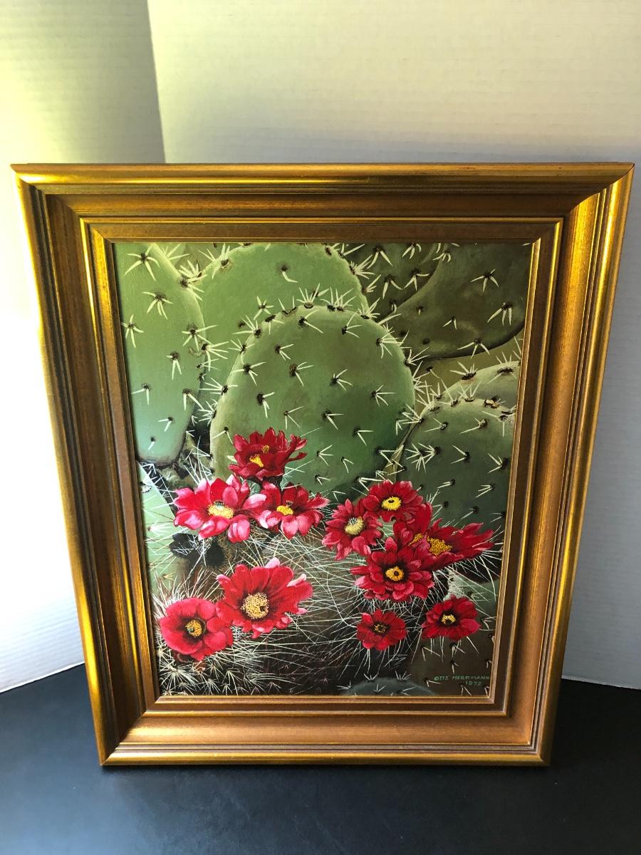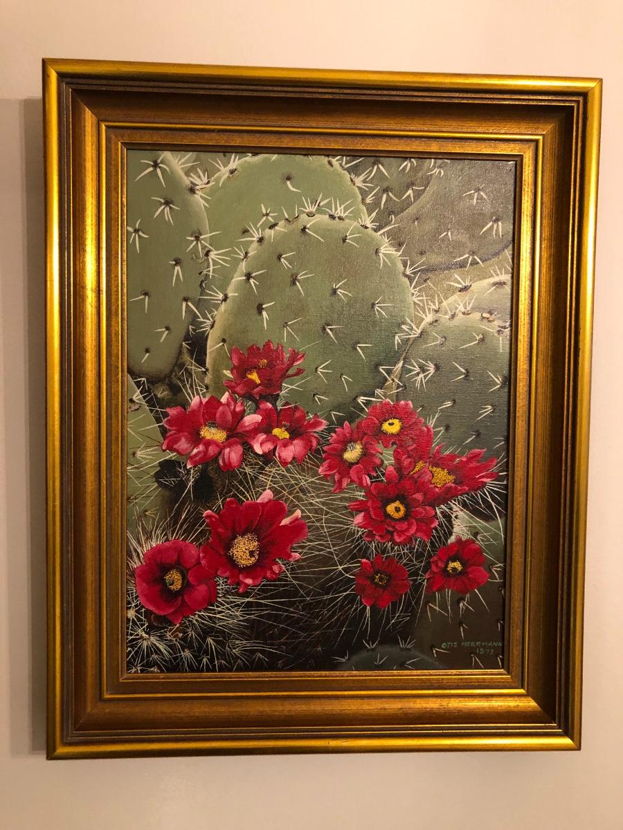 OTIS HERRMANN 1972 Oil on Canvas (Cacti Flowers) -Lot 130