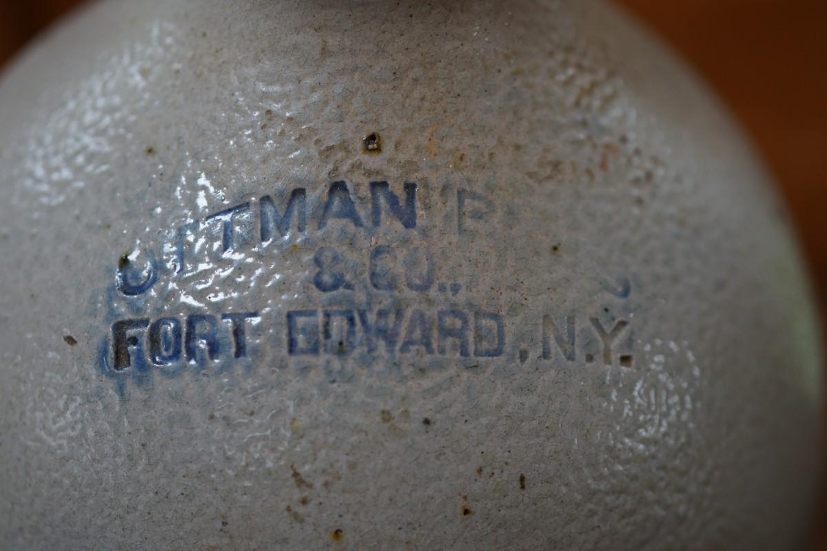 OTTMAN & CO. FORT EDWARDS, N.Y JUG W/COBALT DECO. & SM. OVOID SHAPED EARLY JUG