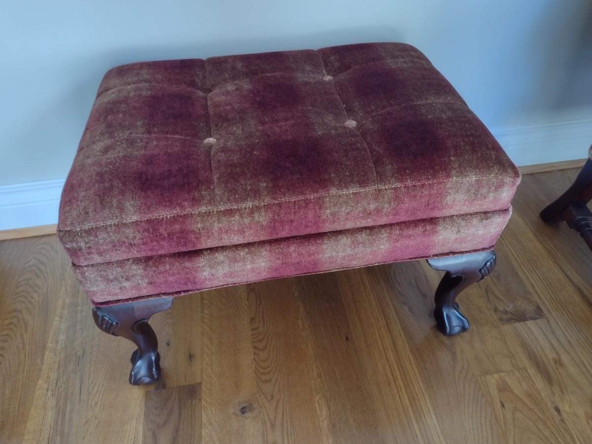 Upholstered Ottoman with Wood Frame and Claw Feet