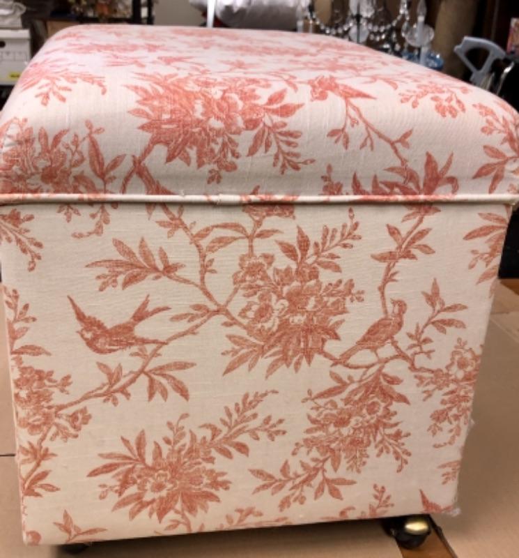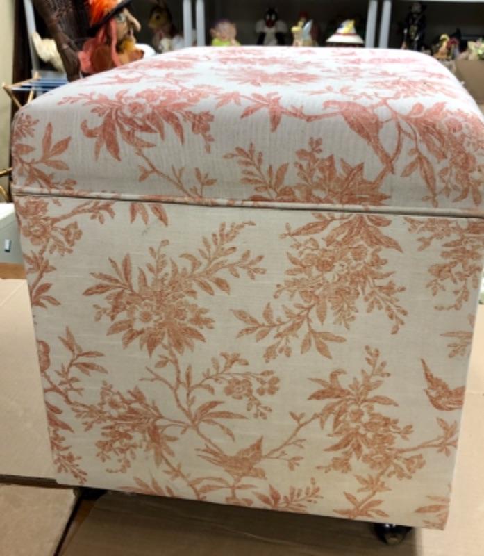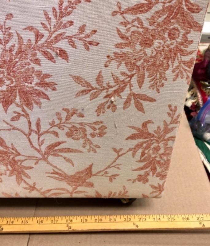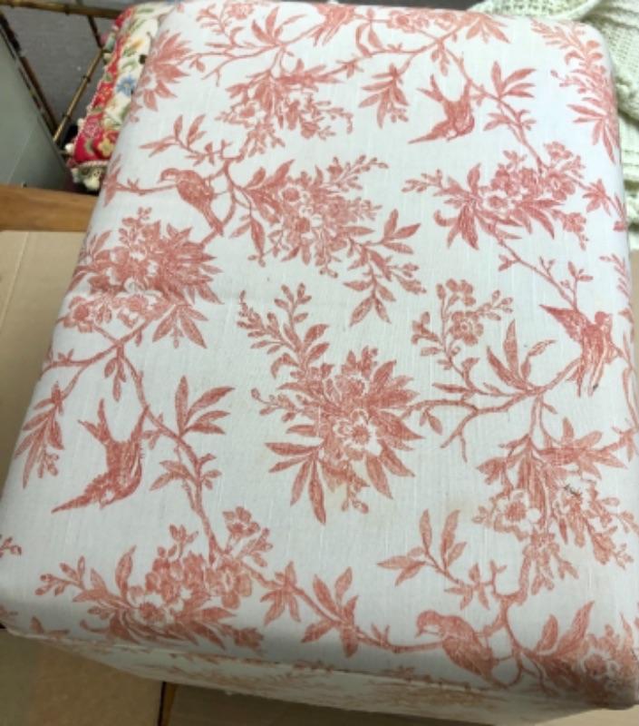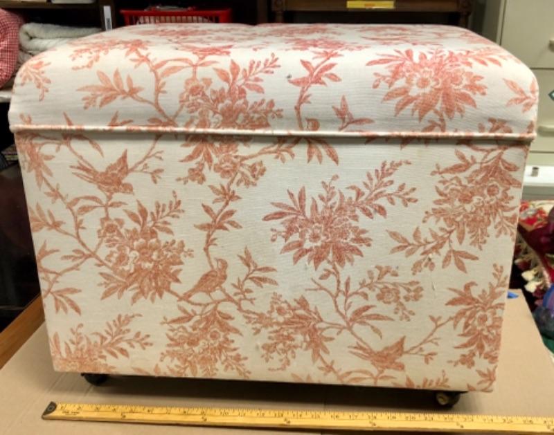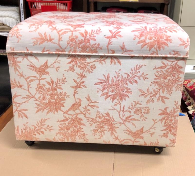 Ottoman Footstool File Storage Box Ed and white chintz upholstery