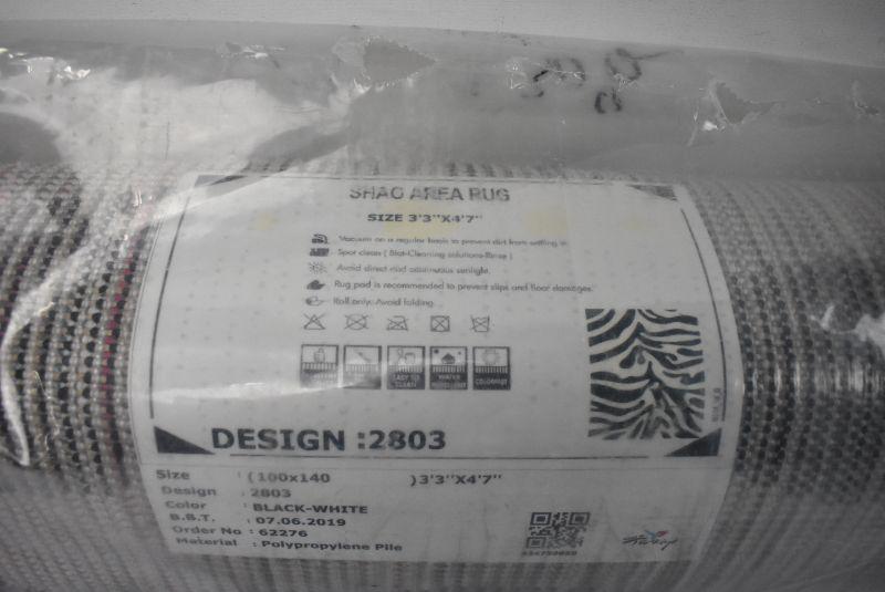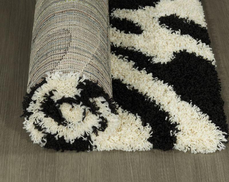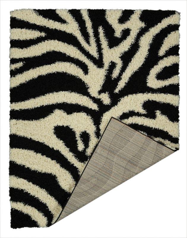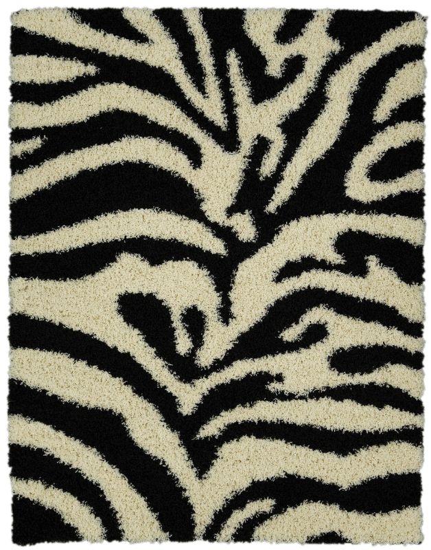 Ottomanson Zebra Design High Pile Soft Shag Rug, Black & Ivory, 3'3"x4'7" - New