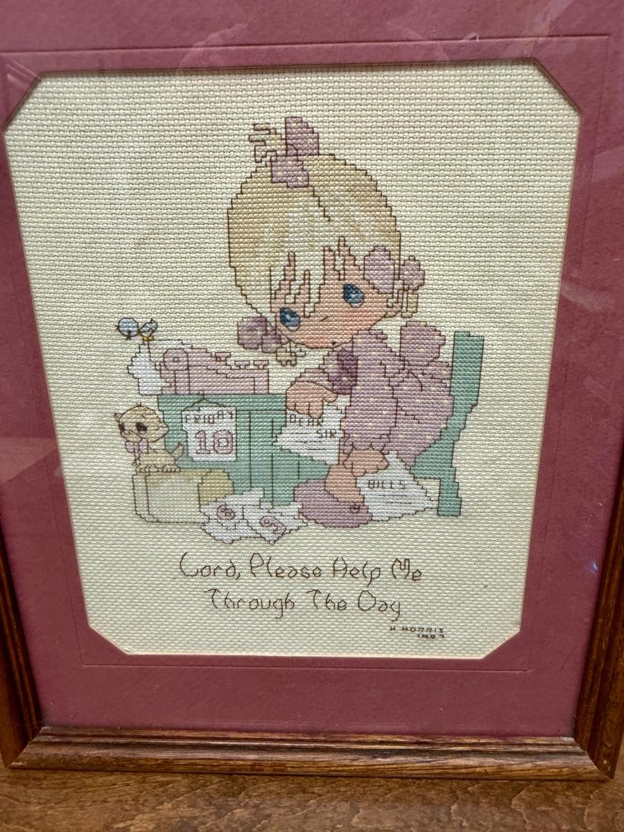 Precious Moments Occupations Cross Stitch completed and framed