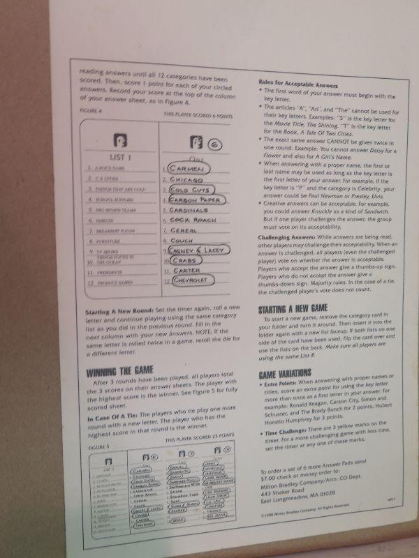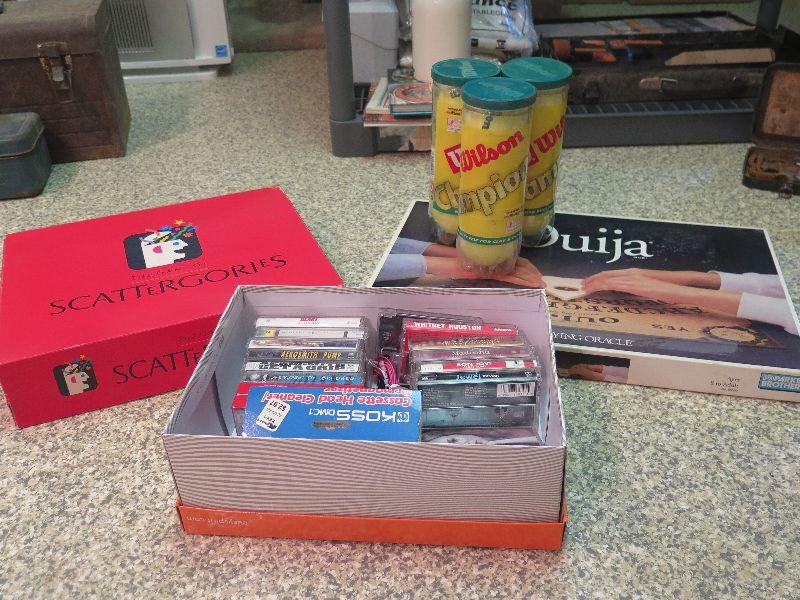 Games for the family, Scattergories, a Ouija Board, tennis balls, and cassette tapes. No guarantee all parts are in boxes. Please read Terms and Conditions before placing a bid. Pick up is Friday, October 25th between 4 and 7, and Saturday, October 26th between 9 and 1. Props included in photos are not included in listing. All measurements are approximate. Comes from home with cats.