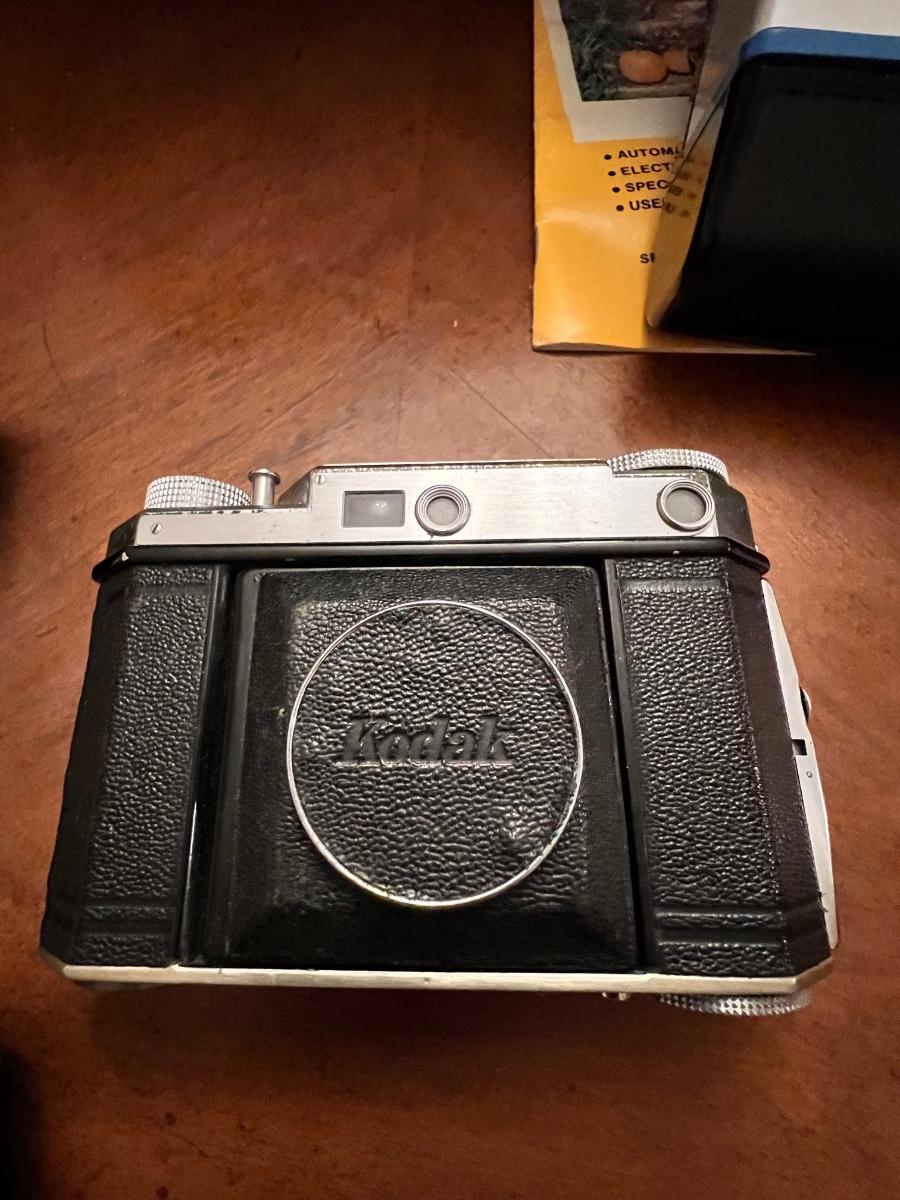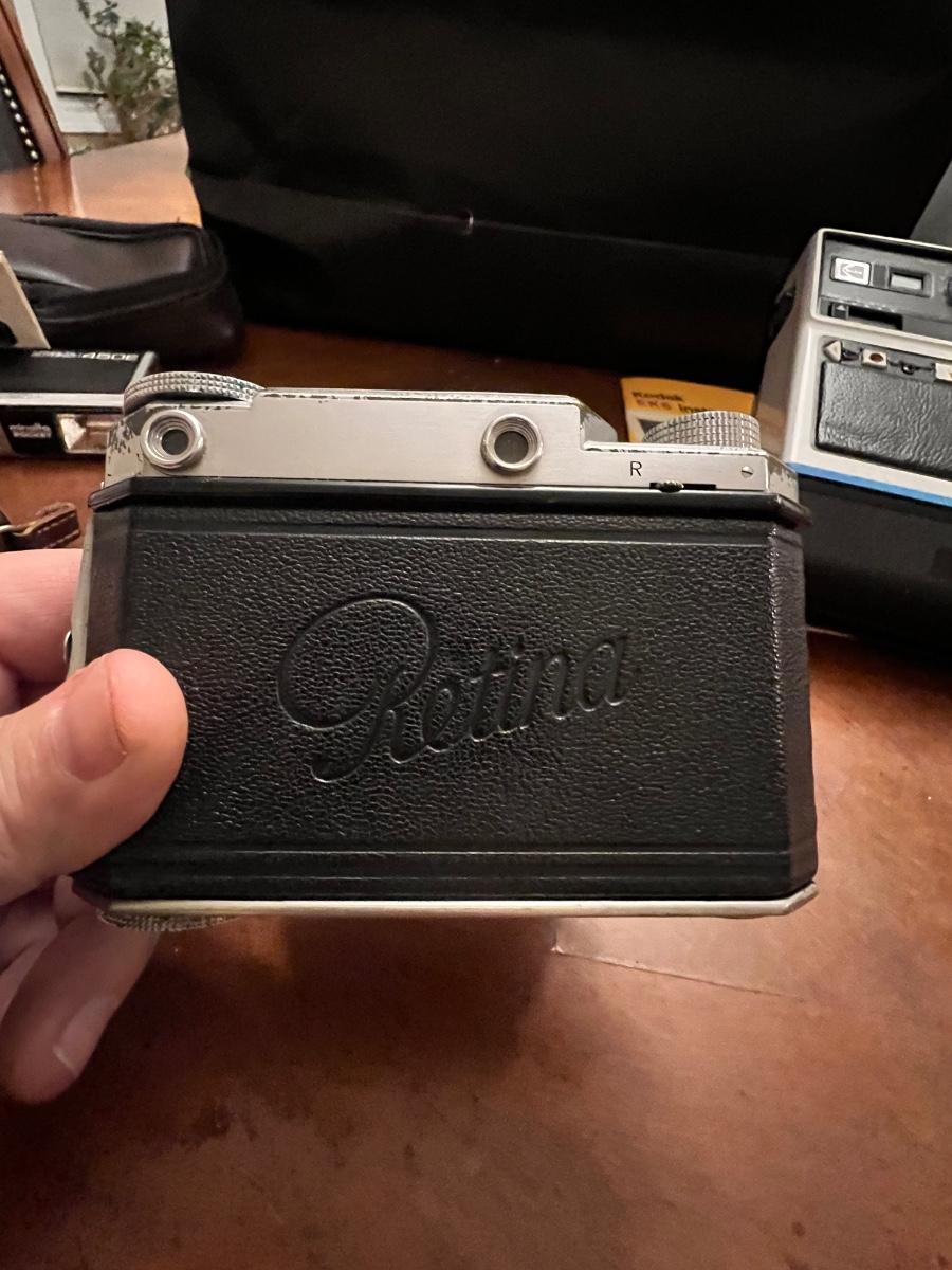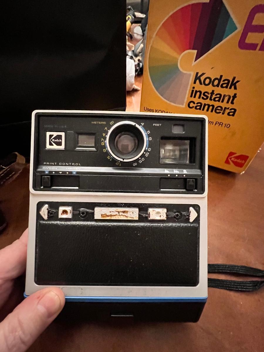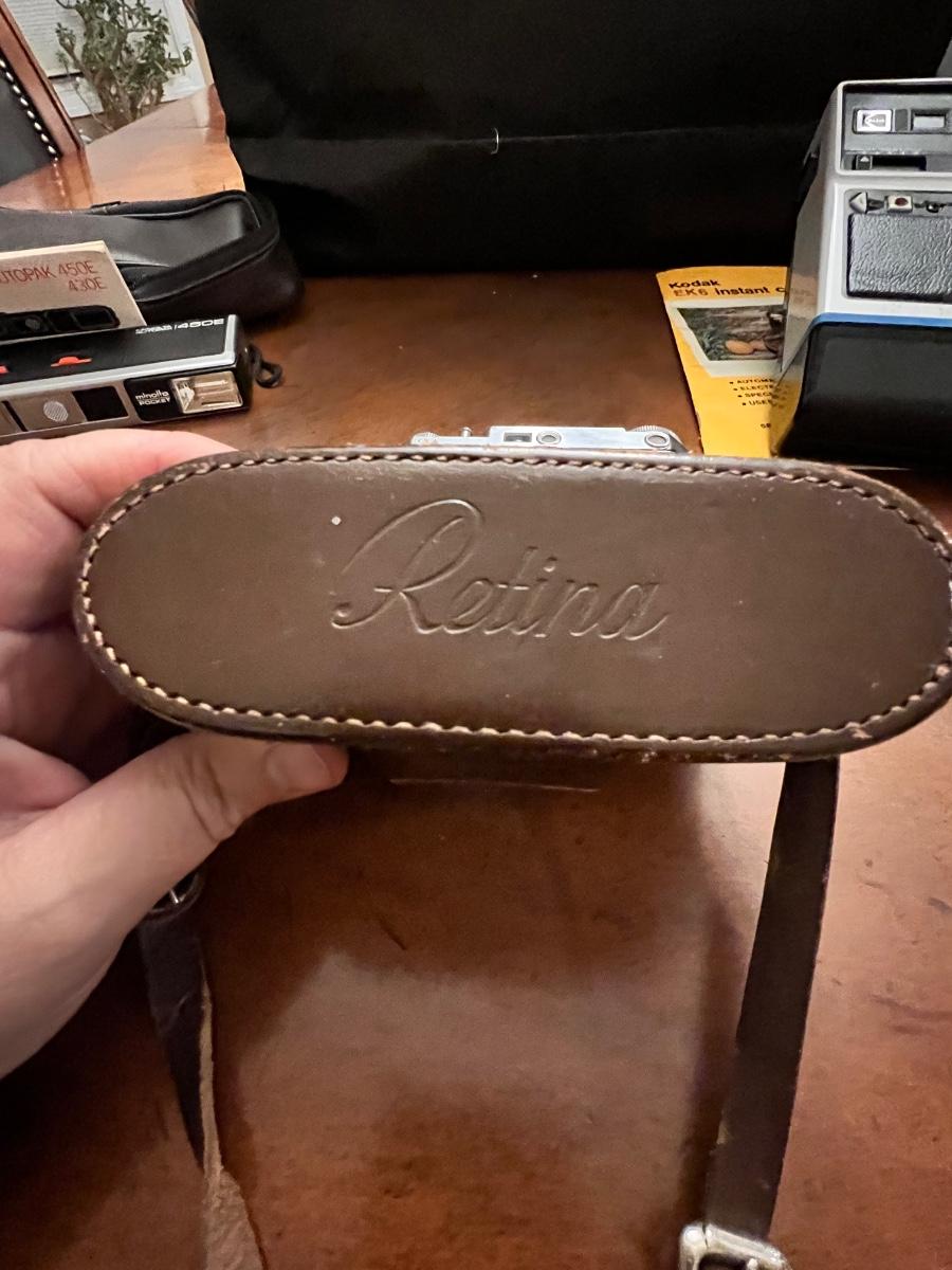 VINTAGE Kodak Retina II from Germany. My dad bought it while he was in Berlin during the war. It’s in great condition! So cool. Then Kodak instant camera. Still with box and manual. Then Minolta 450 E with manual and carrying case.