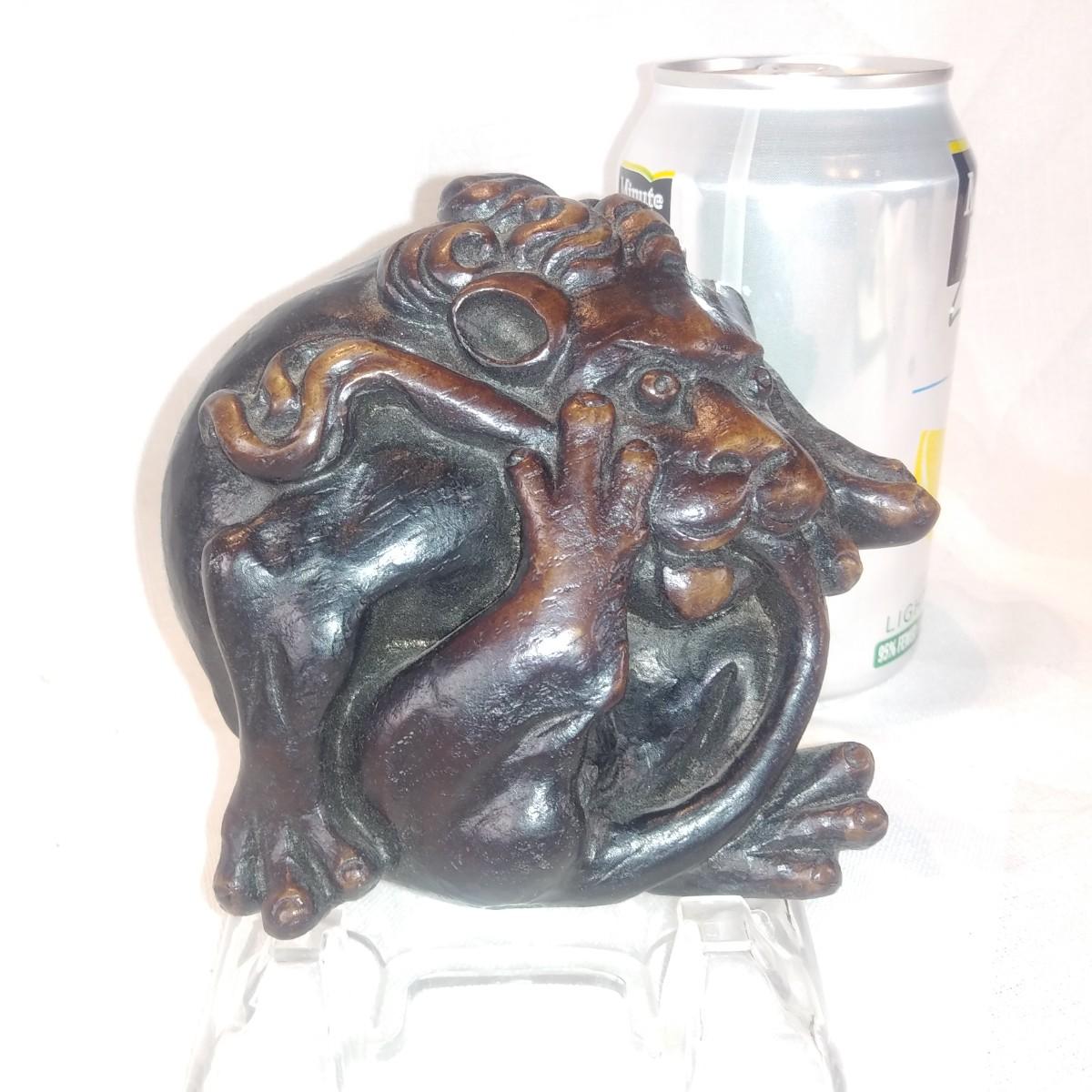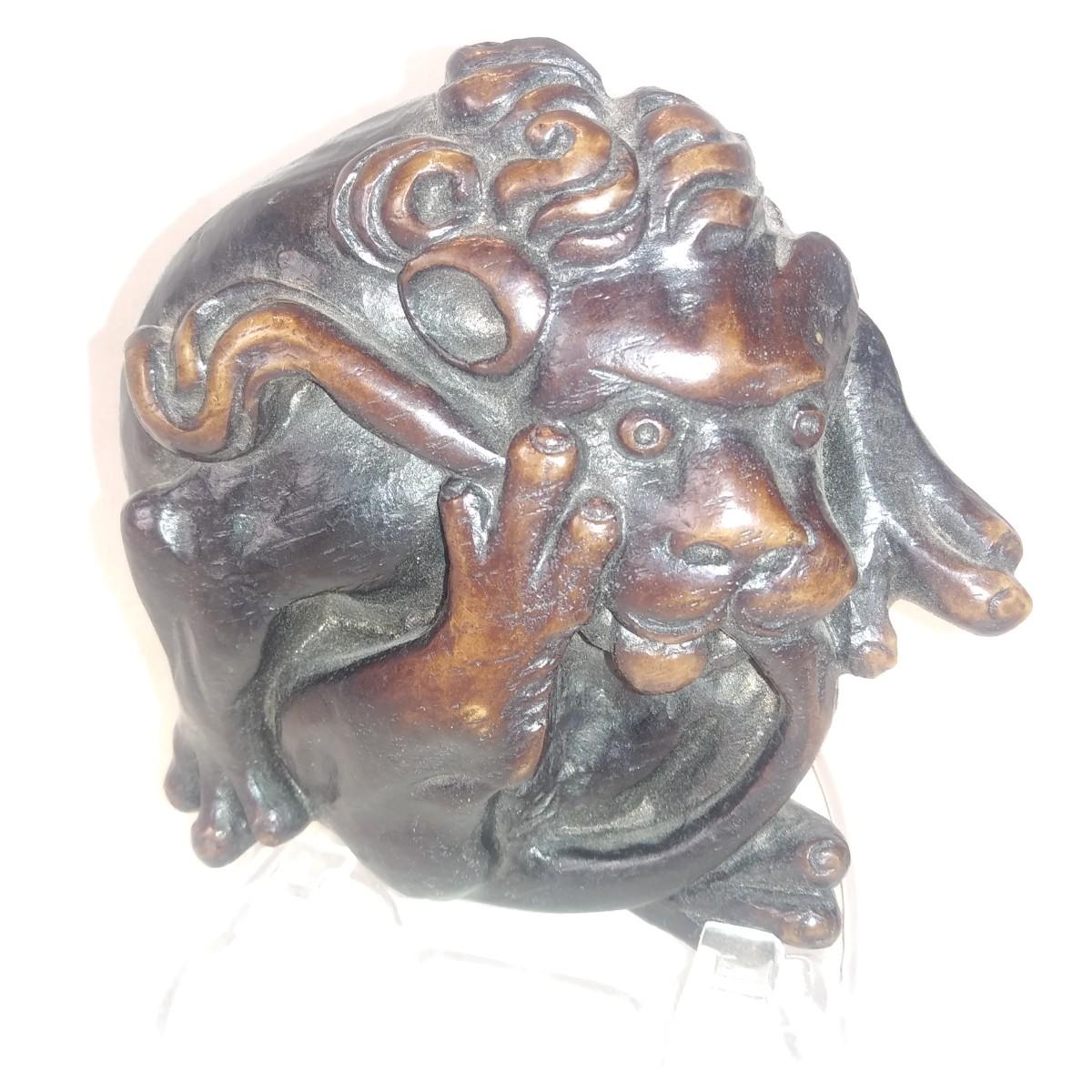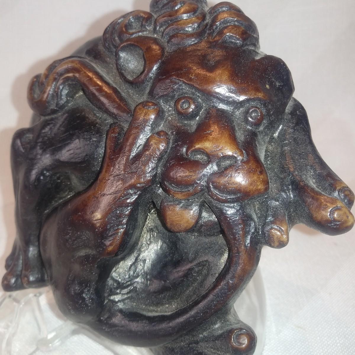 This auction lot is for an Ouroboros Figurine. This figurine was brought back from England in the 80's. An Ouroboros (Lion or Dragon eating it's own tail) is a symbol of eternal cycles and renewal of life from death to rebirth. We are unsure of it's construction material but know it is not wood. Whatever it is gives the appearance of hand-carved wood. It is a nice piece in very good condition and is ready for your decorative use.