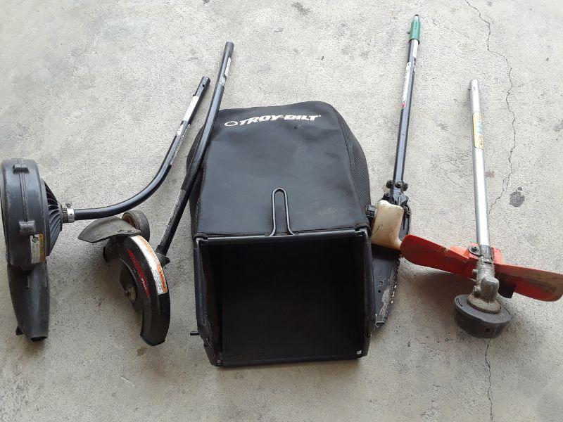 OUT DOOR ACCESSORIES INCLUDES EDGER, WEED EATER, BLOWER, AND CHAINSAW AS WELL AS BAG